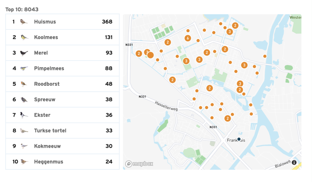 De top 10 in Stadshagen is iets anders dan de landelijke top 10. Zo staat de spreeuw in Stadshagen op plek 6, hoger dan landelijk. En zo komt de landelijke nummer 6, de Kauw, niet voor in de top 10 van Stadshagen.