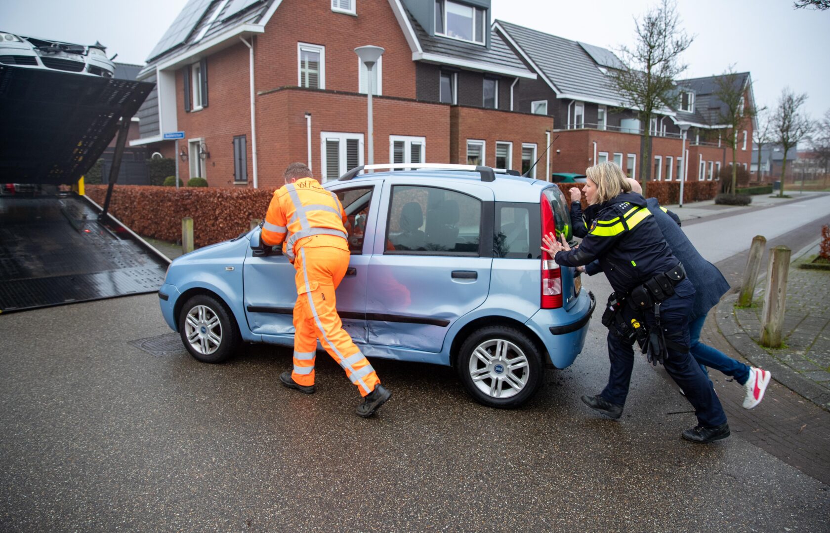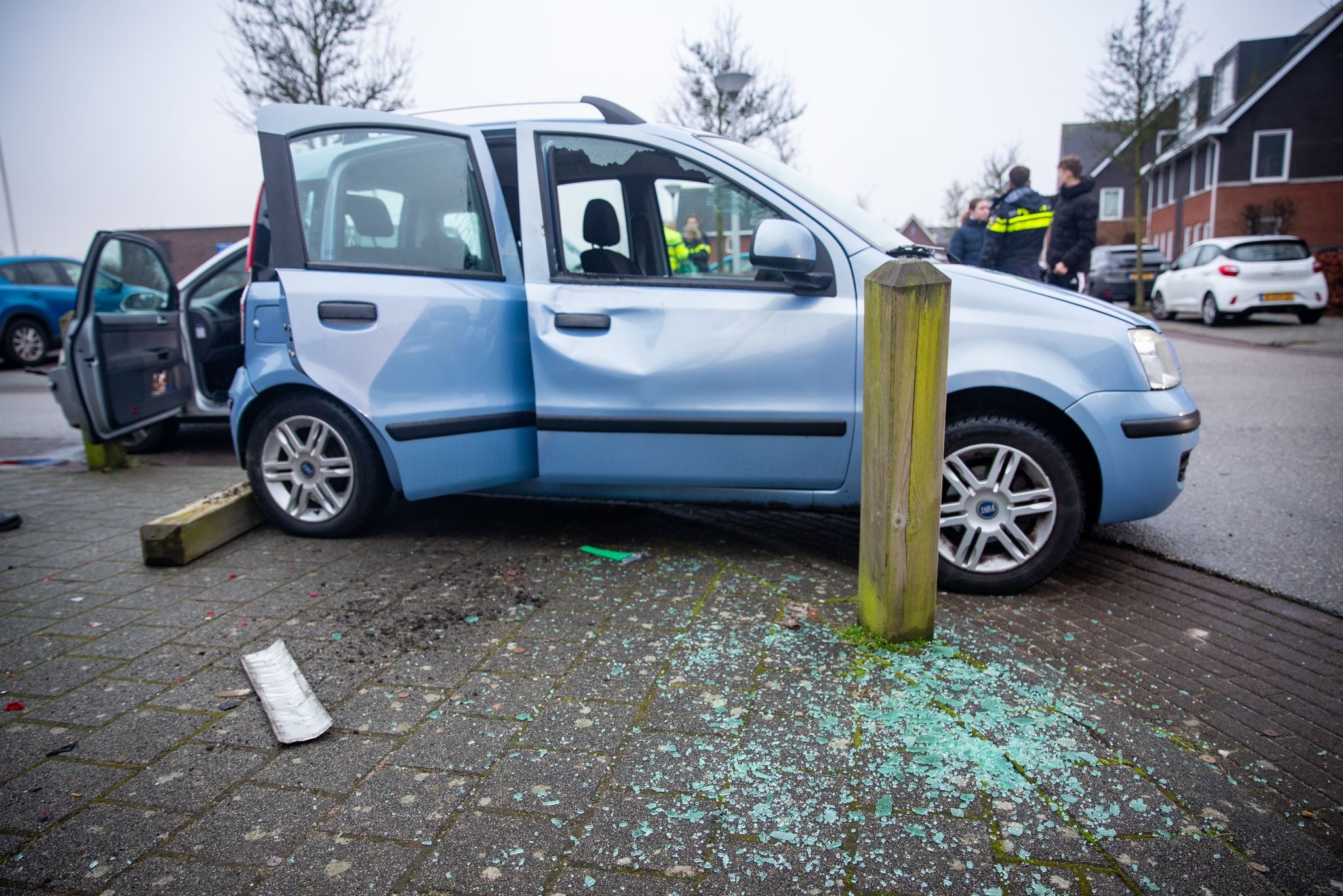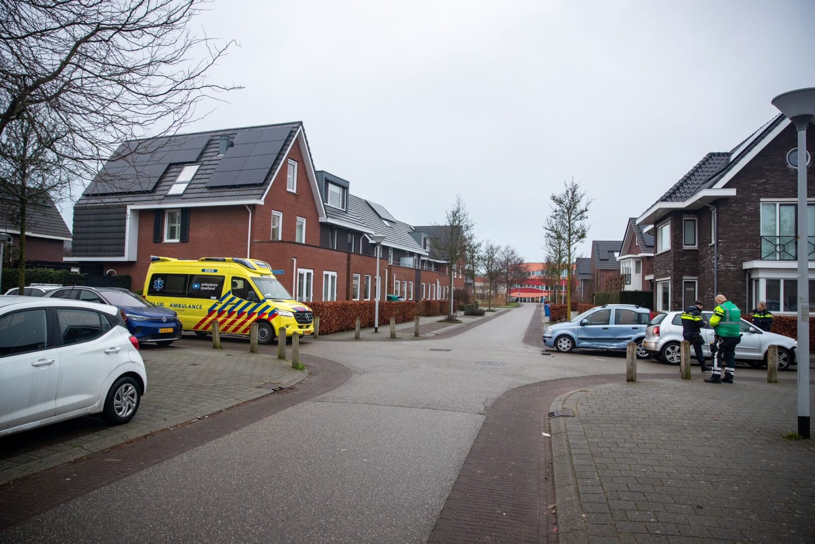 in 2021 vond nabij dezelfde kruising deze opmerkelijke aanrijding plaats, waarbij een auto op de kop belandde.