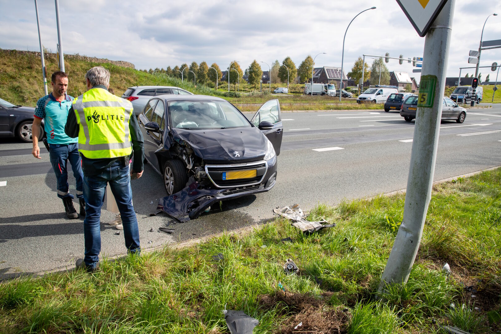 De bestuurder verloor door nog onbekende oorzaak de macht over het stuur, belandde in de berm en kwam daar in botsing met een lantaarnpaal. Zowel de bestuurder als de passagier werden ter plekke onderzocht door ambulancepersoneel, maar vervoer naar het ziekenhuis was niet nodig.