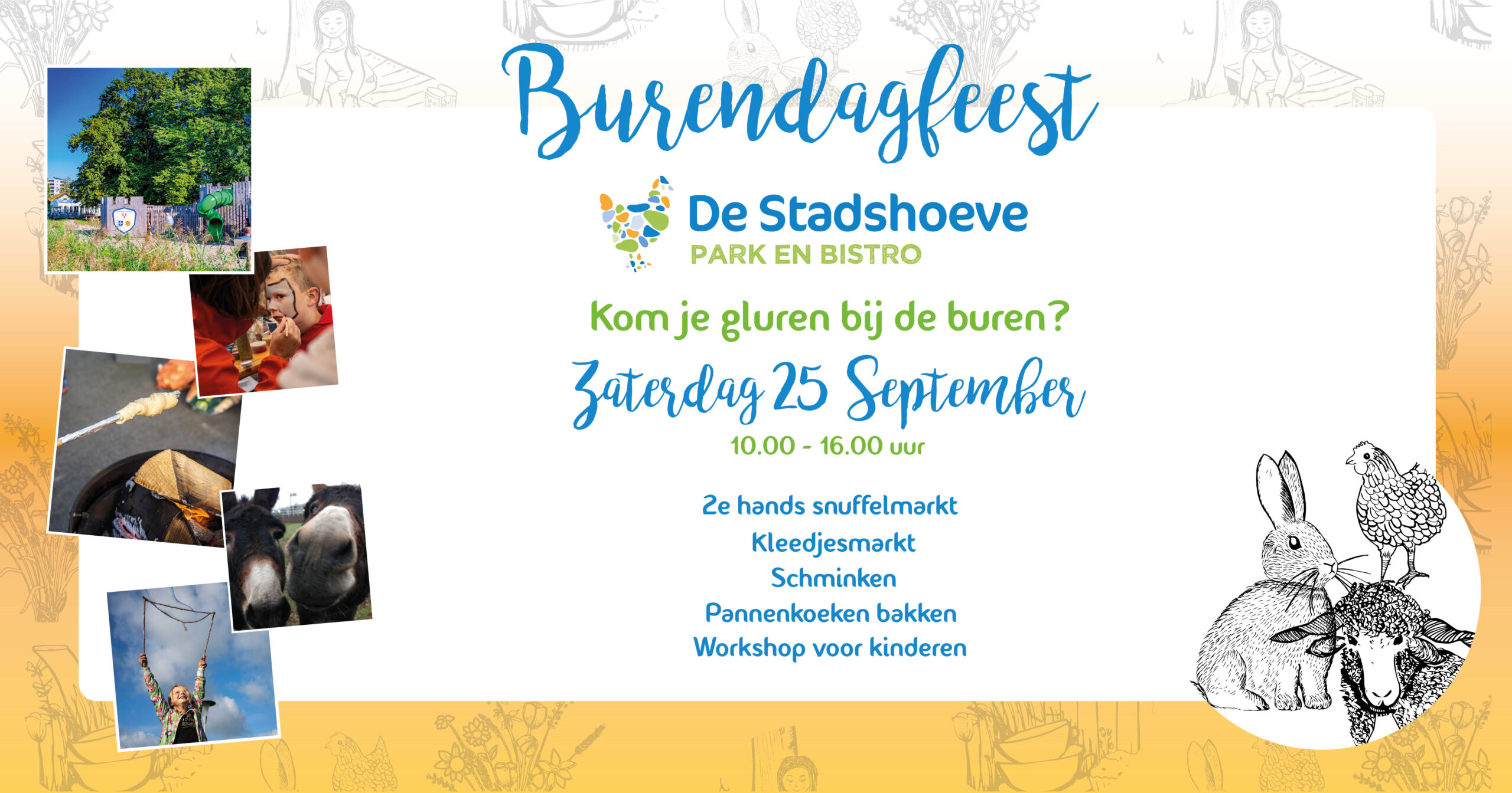 Zaterdag 25 september is het weer burendag. Na een jaar geen feestelijke activiteiten is het tijd om rustig weer met de buren uit Stadshagen samen te komen. Daarom organiseren wij op 25 september burendagfeest met de de volgende activiteiten.