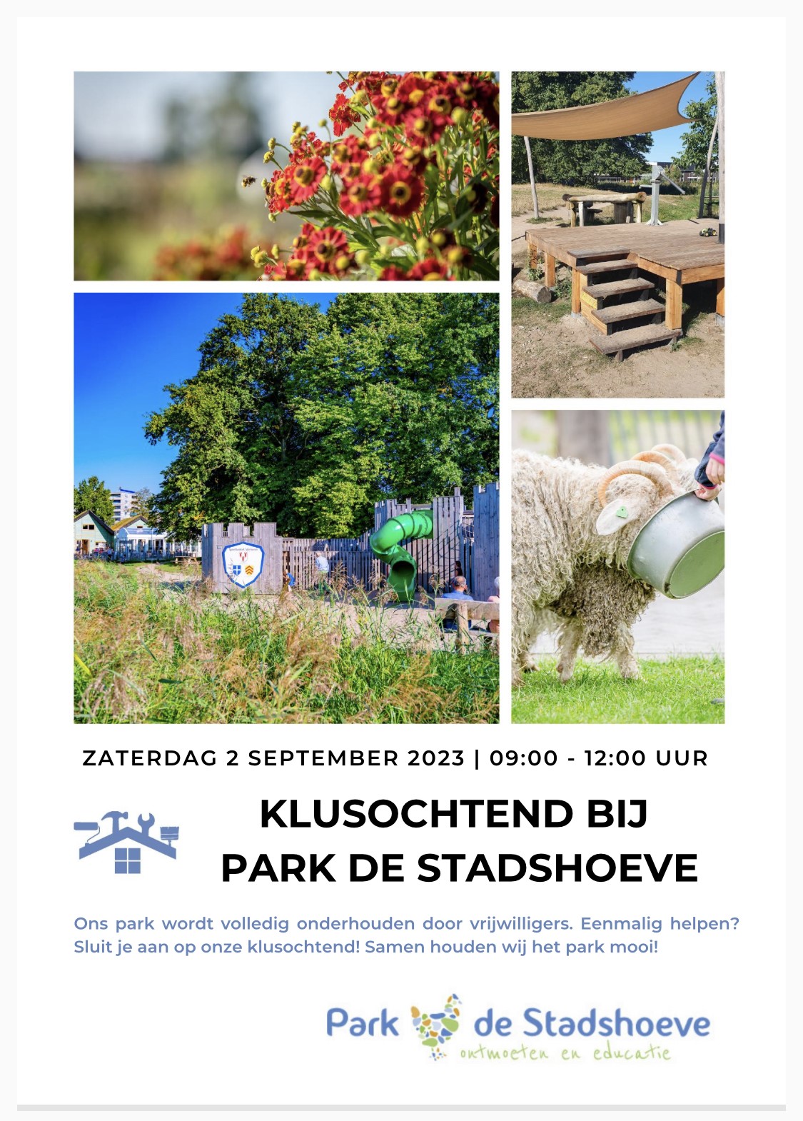 Wil jij Park de Stadshoeve helpen als vrijwilliger? Maar kan/lukt je dit niet op structurele basis? Kom dan naar één van onze klusochtenden. Uit ervaring blijkt dat wij in één ochtend vaak veel gedaan krijgen met extra hulp.