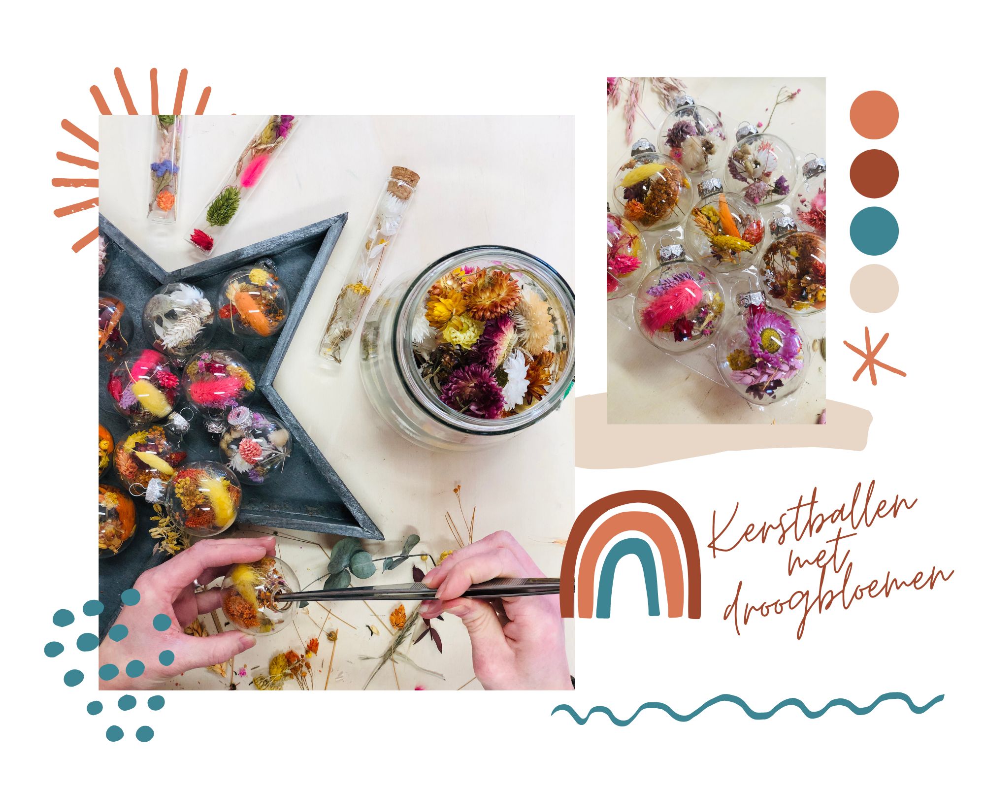 Mini-Workshop – 3 kerstballen met droogbloemen