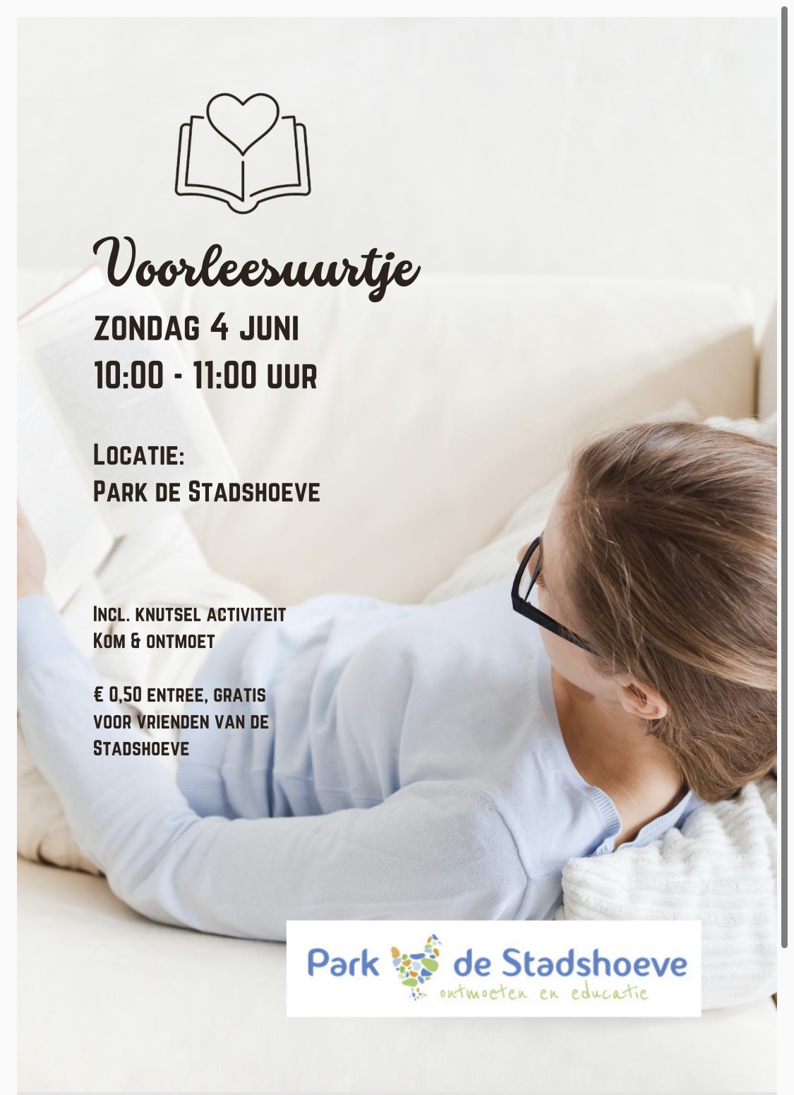 Van 10:00 tot 11:00 een heerlijk en gezellig voorleesuurtje speciaal voor peuters bij Park & Bistro de Stadshoeve. Na het voorlezen is er tijd om lekker te knutselen!