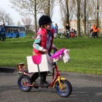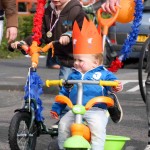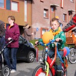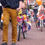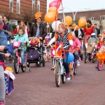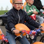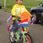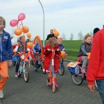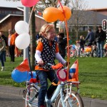 De jongste Oranjefans in Stadshagen waren dinsdag al voor dag en dauw uit de veren. Om kwart voor negen was het al een drukte van jewelste op het basketbalveld op de hoek van de Nijenhuislaan en de Buidelmos. Klokslag negen uur begon showband Jong Jubal te spelen en startte de versierde fietsenoptocht (georganiseerd door wijkstichting Stadshagen Totaal) met als thema ‘ Koning, koningin zoooo 2013’, waarop een stoet versierde fietsen onder begeleiding van muziek door de wijk trok.