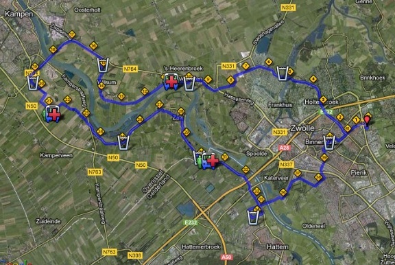 De start van het parcours is om 10.30 uur in het PEC Zwolle Stadion, dat aan de Ceintuurbaan ligt. Vanuit het stadion loopt de route via de Vondeltunnel, de Vondelkade, Vechtstraat en Bisschop Willebrandlaan richting de Middelweg via de Mastenbroekerbrug de wijk Stadshagen in. De route zet zich voort via de Mastenbroekerallee, Nijenhuislaan en vervolgens Havezathenallee. De Zwolseweg wordt ter hoogte van de Veecaterweg verlaten en voortgezet met de Hanzeroute/Boerenlandroute aan de Veecaterdijk met het Theehuis ‘s- Heerenbroek en het Zalkerveer.