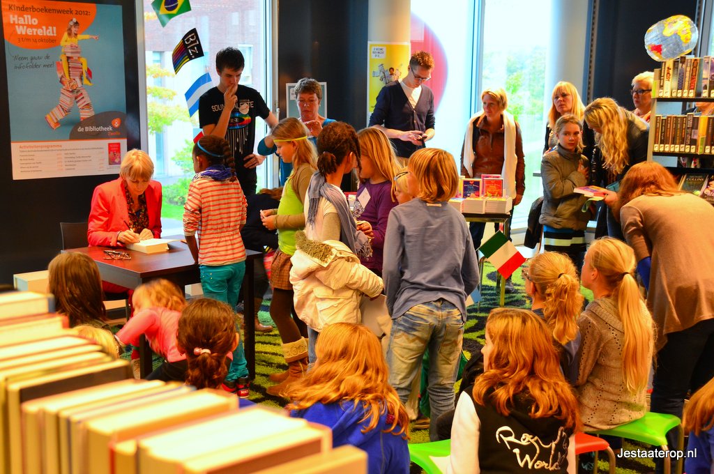 Het thema van de kinderboekenweek 2012 is ‘Hallo wereld’ en staat in het teken van de ontmoeting tussen verschillende culturen. Daarbij is er tijdens de kinderboekenweek speciaal aandacht voor het project  My Book Buddy.  Dit project stimuleert het lezen van kinderen in ontwikkelingslanden door kinderbibliotheken op te zetten.