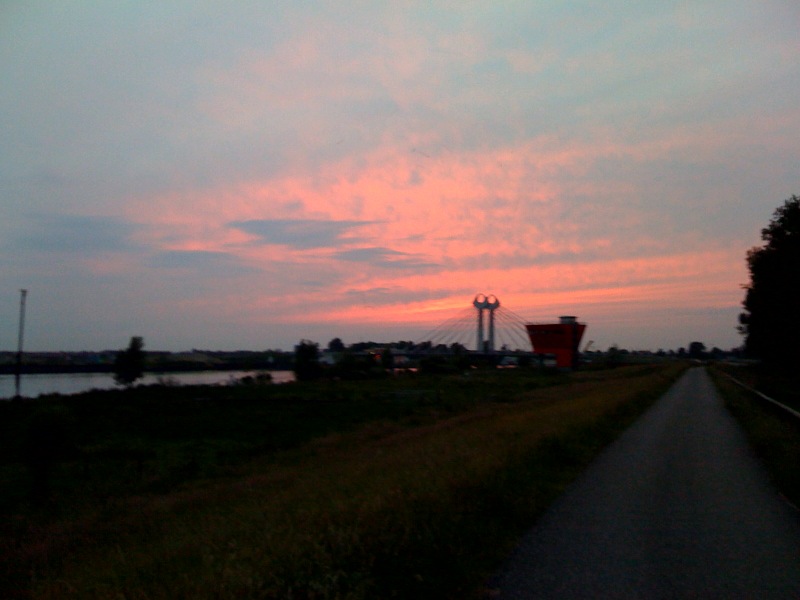 “Avondrood, mooi weer aan boord, morgenrood, regen in de sloot.” De Twistvlietbrug steekt maandagavond statig als een wachter van de wijk Stadshagen tegen de avondrode hemel af. Dankzij het fraaie staaltje architectuur een onbetaalbaar plaatje waar weinig woorden voor nodig zijn. Hoewel de eeuwenoude spreuk die voorafging aan deze tekst ditmaal helaas niet uitkomt: volgens de voorspellingen komt het regenwater dinsdag met bakken uit de hemel…