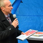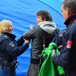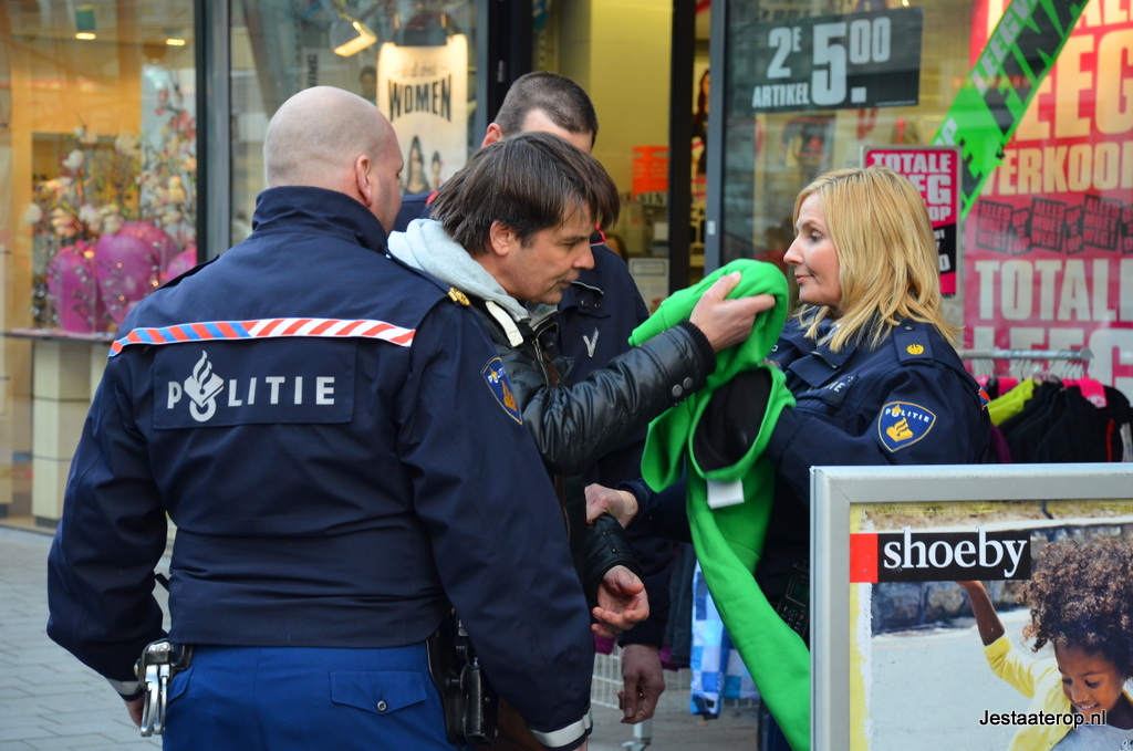 De meeste bezoekers waren zich evenwel niet bewust van de reden voor al deze feestelijkheden. Dat veranderde toen de vaste beveiliger van het winkelcentrum een man aanhield die een vest gestolen zou hebben bij de sportzaak. De beide wijkagenten van Stadshagen, die ’toevallig’ in de buurt waren, konden snel de luidkeels protesterende winkeldief overnemen en afvoeren.