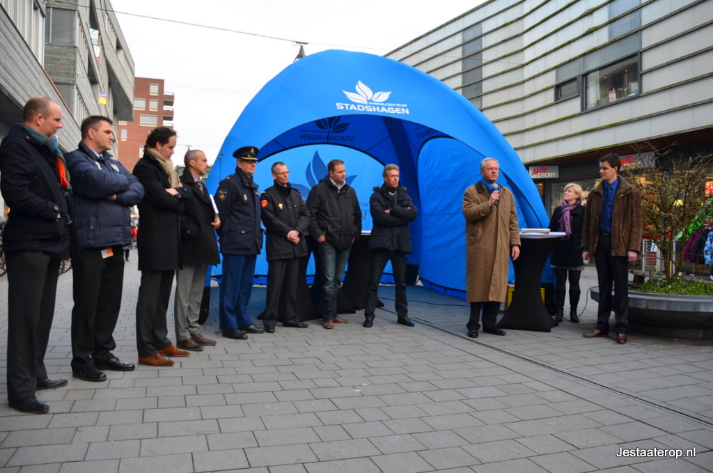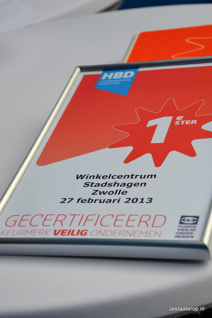 Het winkelcentrum in Stadshagen heeft woensdagmiddag het Keurmerk Veilig Ondernemen (KVO) uitgereikt gekregen. Bij de feestelijke uitreiking waren burgemeester Henk Jan Meijer, Jeroen Nagelmaeker en vertegenwoordigers van politie, brandweer, het Hoofdbedrijfschap Detailhandel en Corio (eigenaar van het winkelcentrum) aanwezig.