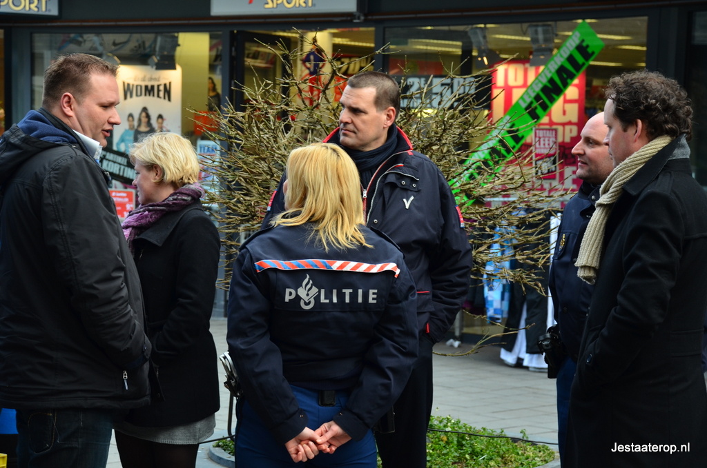 Een in scene gezet opstootje, maar wel met een boodschap: het KVO moet er voor zorgen dat het winkelcentrum veiliger wordt. Onder andere doordat de bij het winkelcentrum betrokken partijen regelmatig met elkaar om tafel zitten en elkaar snel kunnen vinden als dat nodig is.