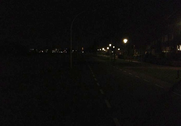 Bovenstaande foto is van zaterdagavond, duidelijk is dat het hele fietspad donker is. Aanwonenden en gebruikers van het Twistvlietpad melden ons dat de straatverlichting van het fietspad de hele avond uitstond. Alleen de verlichting langs het voetpad was in werking. Het is aanwonenden en gebruikers de laatste tijd vaker opgevallen dat de verlichting langs het fietspad deels uitstond. Mogelijk hebben deze overvallers handig gebruik gemaakt van de duisternis.