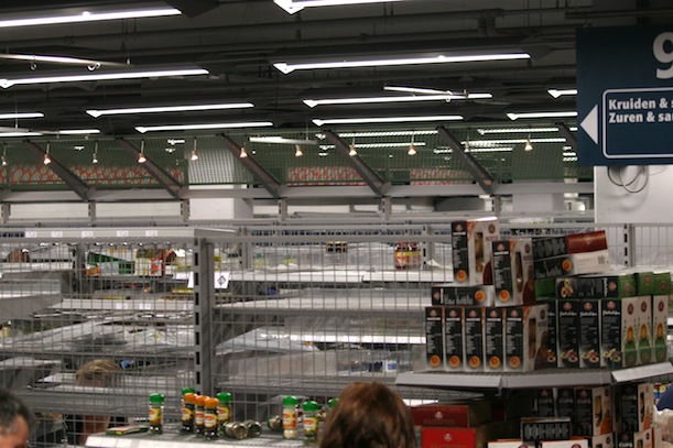 De C1000 in Stadshagen hield zaterdag uitverkoop met fikse kortingen op het assortiment en dat heeft de winkelier geweten. Naast rijen auto’s op het parkeerterrein en een mierenhoop aan koopjesjagers die van heinde en ver kwamen, was de winkel binnen de kortste keren bijna leeggekocht. Zaterdag was de laatste dag van de winkel als C1000: 24 april heropend de zaak als Jumbo.
