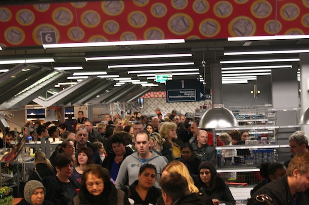 De actie trok koopjesjagers die uit alle uithoeken van de stad en regio kwamen en soms met wel vijf karren vol boodschappen de supermarkt uitreden. Het gevolg was een onnoemlijke chaos op het parkeerterrein, waar automobilisten uit pure gekheid niet meer wisten waar ze de auto nog konden dubbelparkeren. Omliggende ondernemers gaven aan geen profijt te hebben gehad van de massale toestroom: die moeten het toch meer hebben van de normale klandizie in het winkelcentrum.