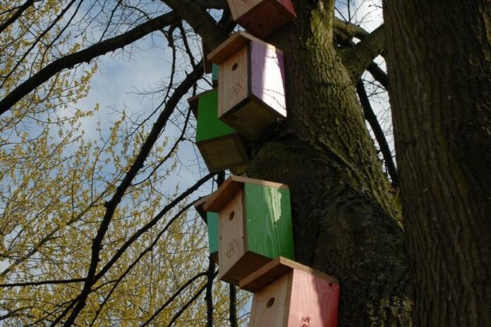 De huisjes zijn vervaardigd van duurzaam hout en zijn bij uitstek geschikt voor mussen. Mussen nestelen echter niet in bomen. Wel willen ze in dergelijke kasten nestelen wanneer deze opgehangen worden op een beschutte plek aan een muur. De initiatiefnemers juichen het dan ook toe wanneer de huisjes ook echt door vogels gebruikt gaan worden. Wilt u graag zo’n fraai vogelhuisje in uw tuin? Dat kan, de vogelhuisjes die voorzien zijn van het Stadshagenlogo mogen verwijderd worden uit de bomen om ze een nieuwe plek te geven aan uw gevel- , tuin- of schuurmuur. Verwijderen kan simpel door ze van het haakje te tillen. Voorzichtigheid is daarbij wel geboden, vanwege de hoogte waarop sommige huisjes in de bomen hangen. Ook is het beter alleen de huisjes uit de bomen in de wijken te halen en niet langs de drukke verkeerswegen.