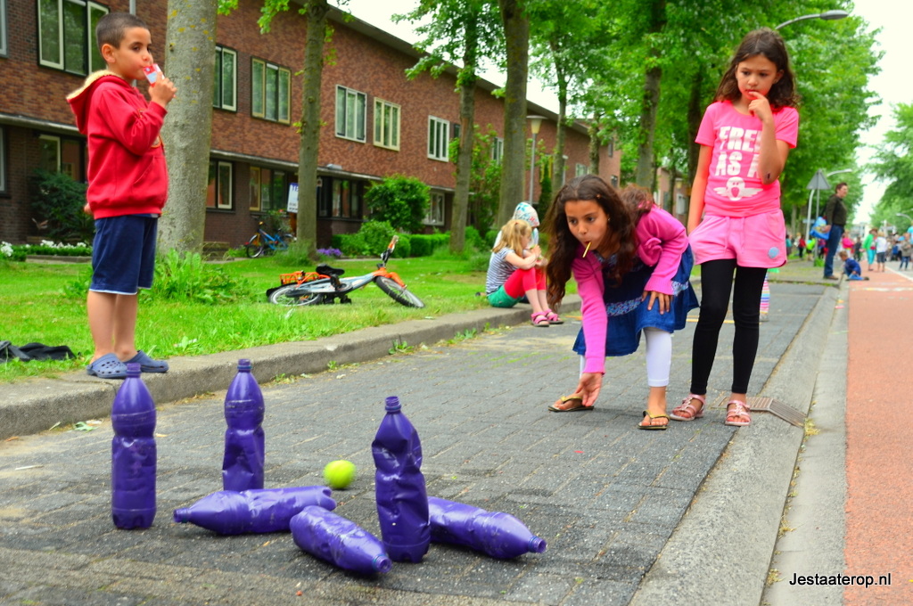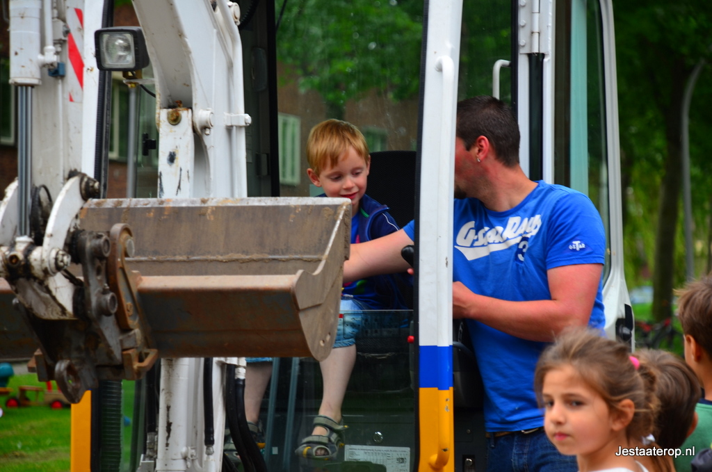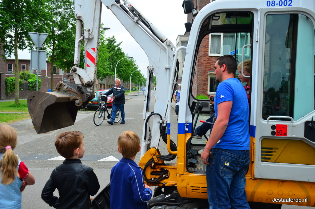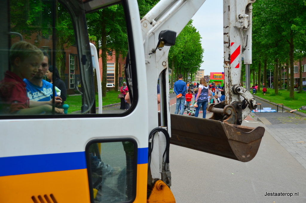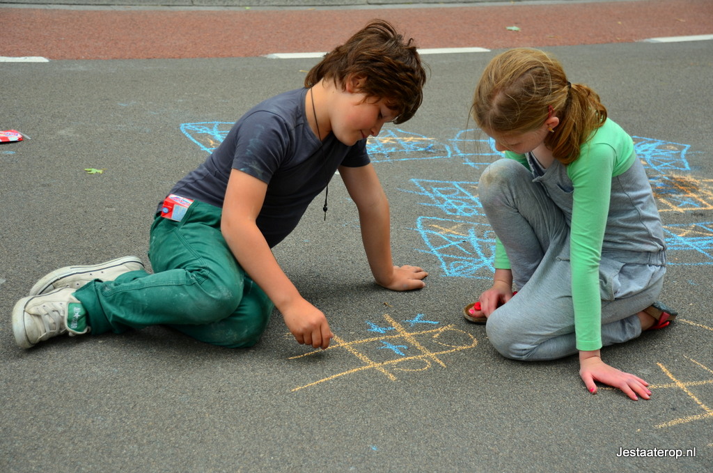 Kinderen konden zich uitleven op een springkussen, met stoepkrijt en op een waterspelparcours en er was een echte graafmachine die door kinderen bestuurd kon worden. Hoewel de meeste kinderen zich prima leken te vermaken, was niet iedereen tevreden; twee wat oudere jongetjes gebruikten het stoepkrijt om hun ongenoegen te uiten: “Saaie buitenspeeldag” schreven ze op de weg. Vorig jaar was er veel meer te beleven volgens de jongens.