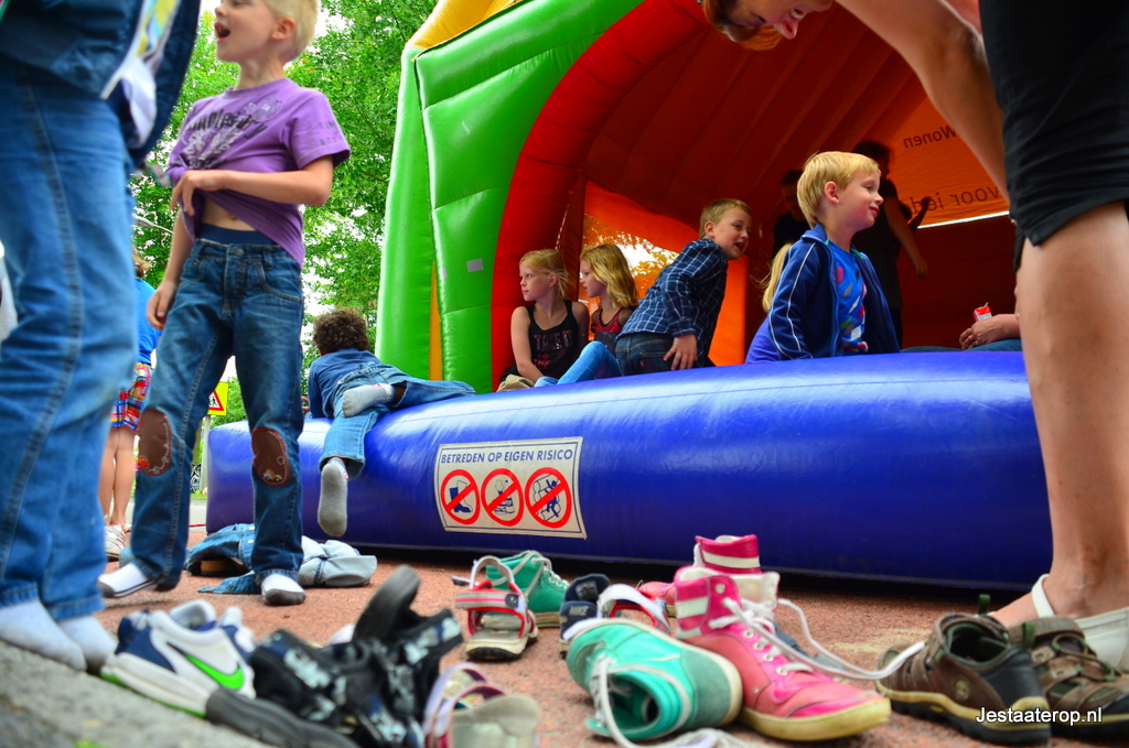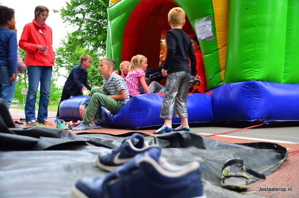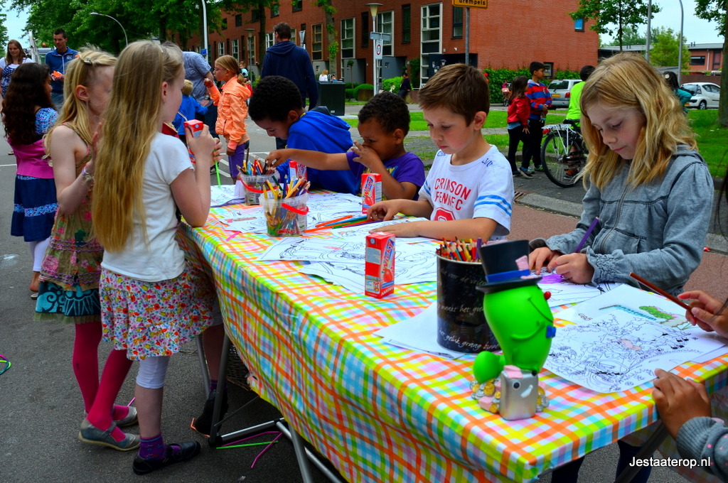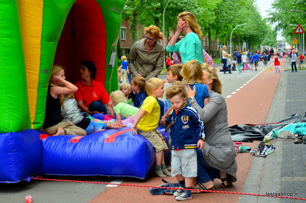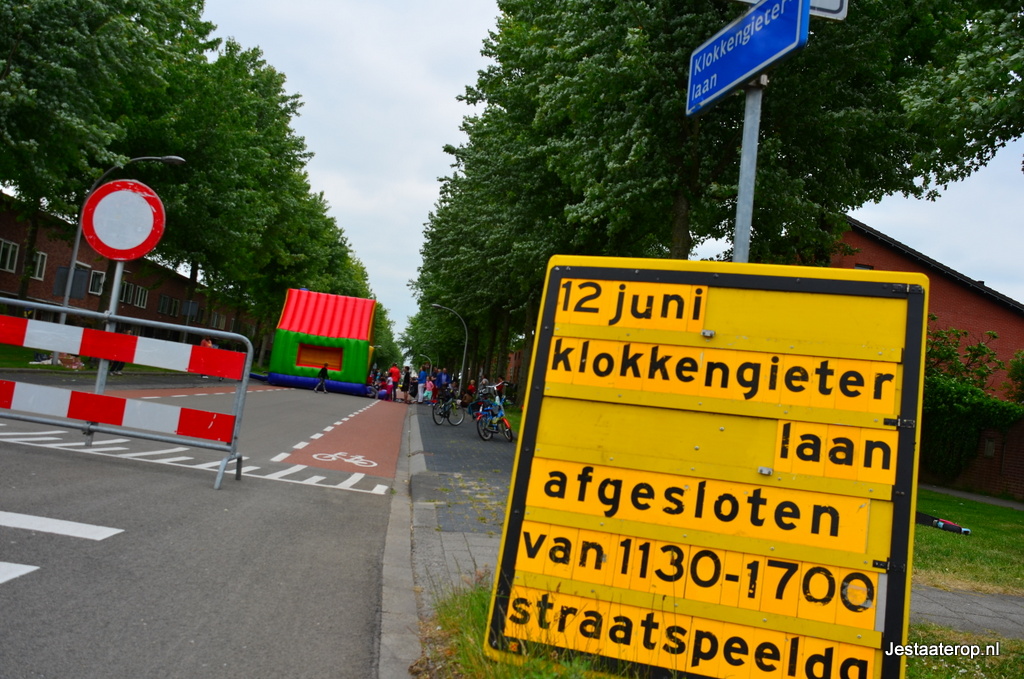 Kinderen konden zich uitleven op een springkussen, met stoepkrijt en op een waterspelparcours en er was een echte graafmachine die door kinderen bestuurd kon worden. Hoewel de meeste kinderen zich prima leken te vermaken, was niet iedereen tevreden; twee wat oudere jongetjes gebruikten het stoepkrijt om hun ongenoegen te uiten: “Saaie buitenspeeldag” schreven ze op de weg. Vorig jaar was er veel meer te beleven volgens de jongens.