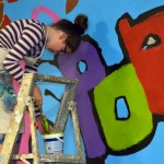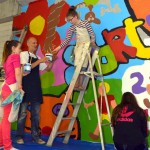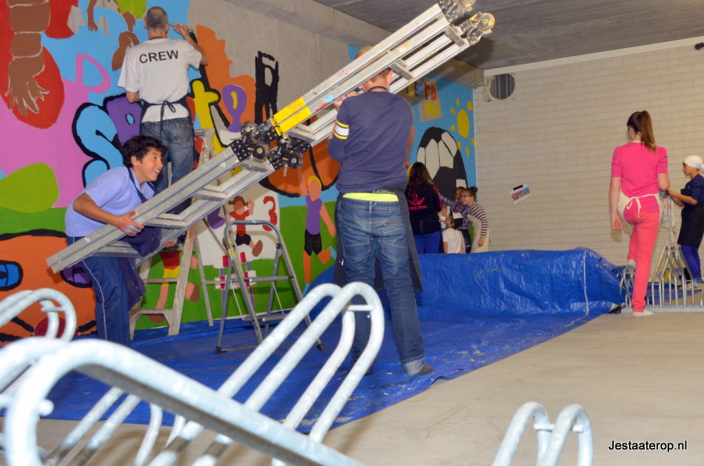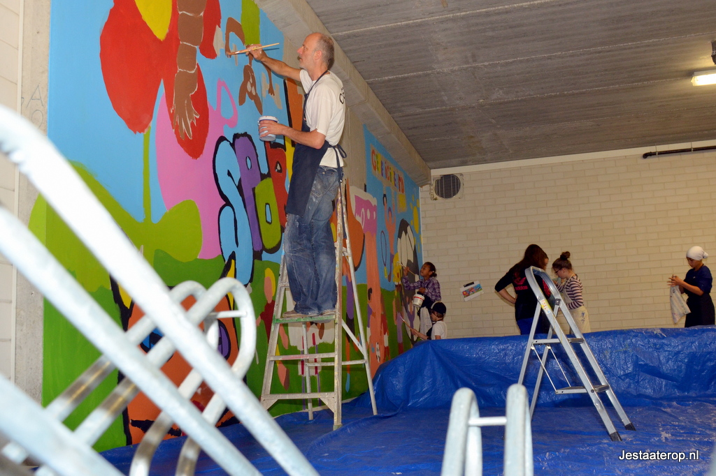 Na vier middagen schilderen is de muurschildering bijna klaar. De laatste stukjes worden volgende week afgemaakt en daarna ziet de fietsenstalling er een stuk vrolijker uit!