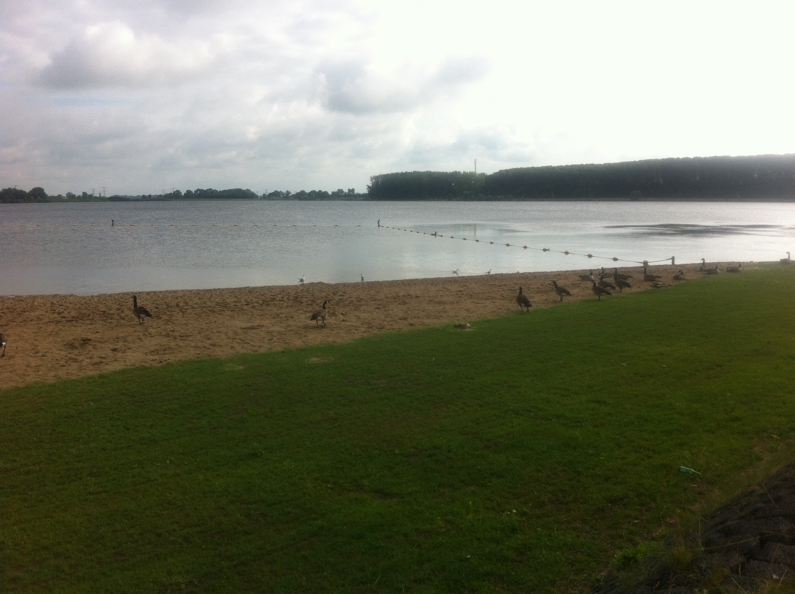 Veel ganzen gebruiken de afgelopen dagen de recreatieplas als openbaar toilet, zodat de zwemmers al slalommend richting het water moeten. StadshagenNieuws kreeg deze foto’s toegezonden van een frequent strandbezoeker.