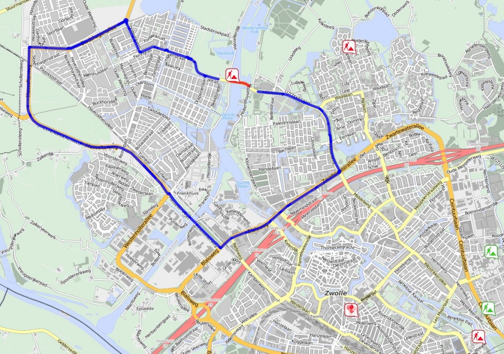 De omleidingsroute met de auto naar bijvoorbeeld de Aa-landen loopt in de kilometers. Vanuit Stadshagen moet je dan via de Hasselterweg en de Blaloweg rijden. Met de fiets is de route via de Twistvlietbrug het snelst.