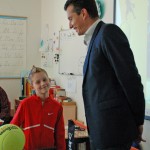 Voor de 9-jarige Tijn Nieuwenhuis ging vanochtend een wens in vervulling. Niemand minder dan tennislegende Richard Krajicek nam deel aan Tijn’s spreekbeurt over tennis op basisschool De Kopakker te Stadshagen.