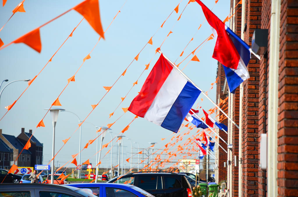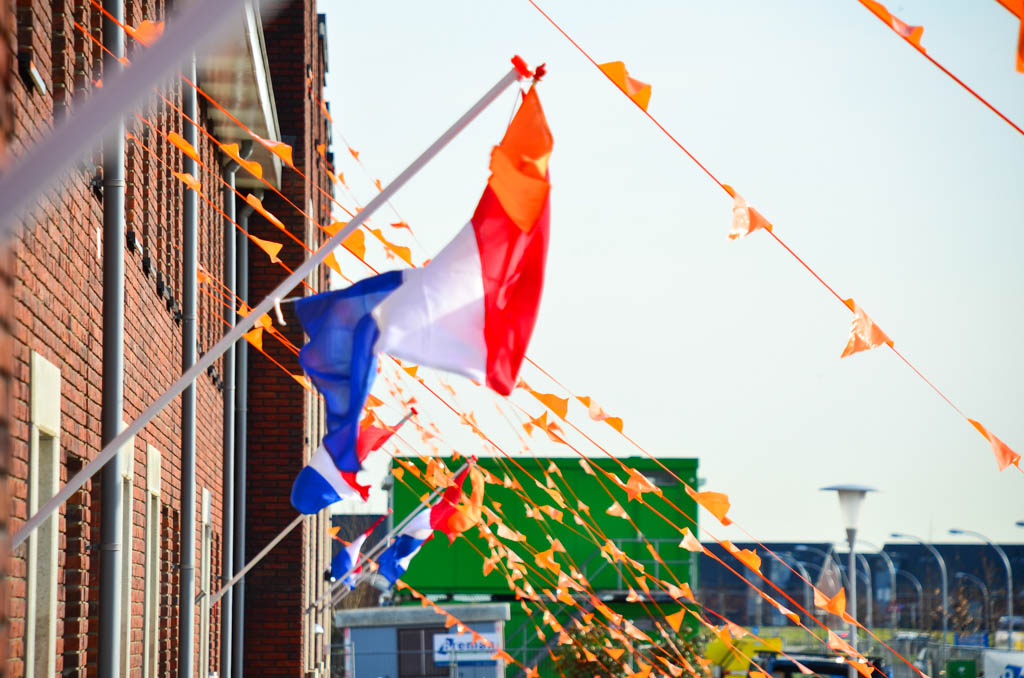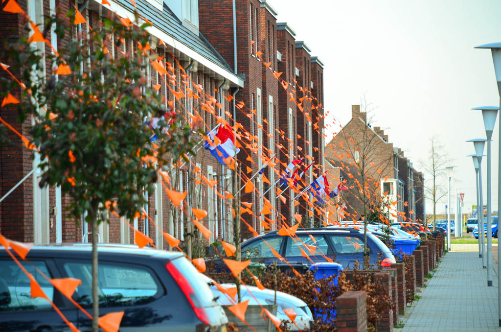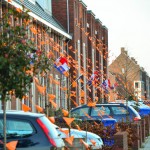 Zaterdagmiddag waren een aantal trotse buren al druk in de weer om alle huizen in de straat te voorzien van oranje vlaggetjes. Op maandag ging bij veel huizen de vlag uit en werd een grote feesttent opgebouwd.