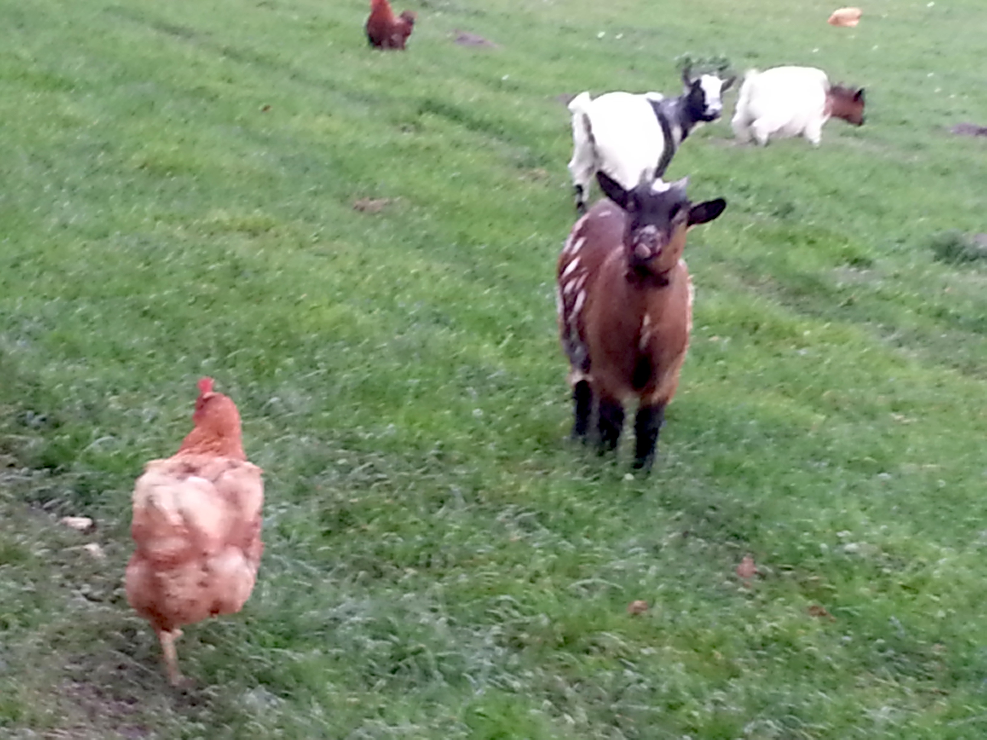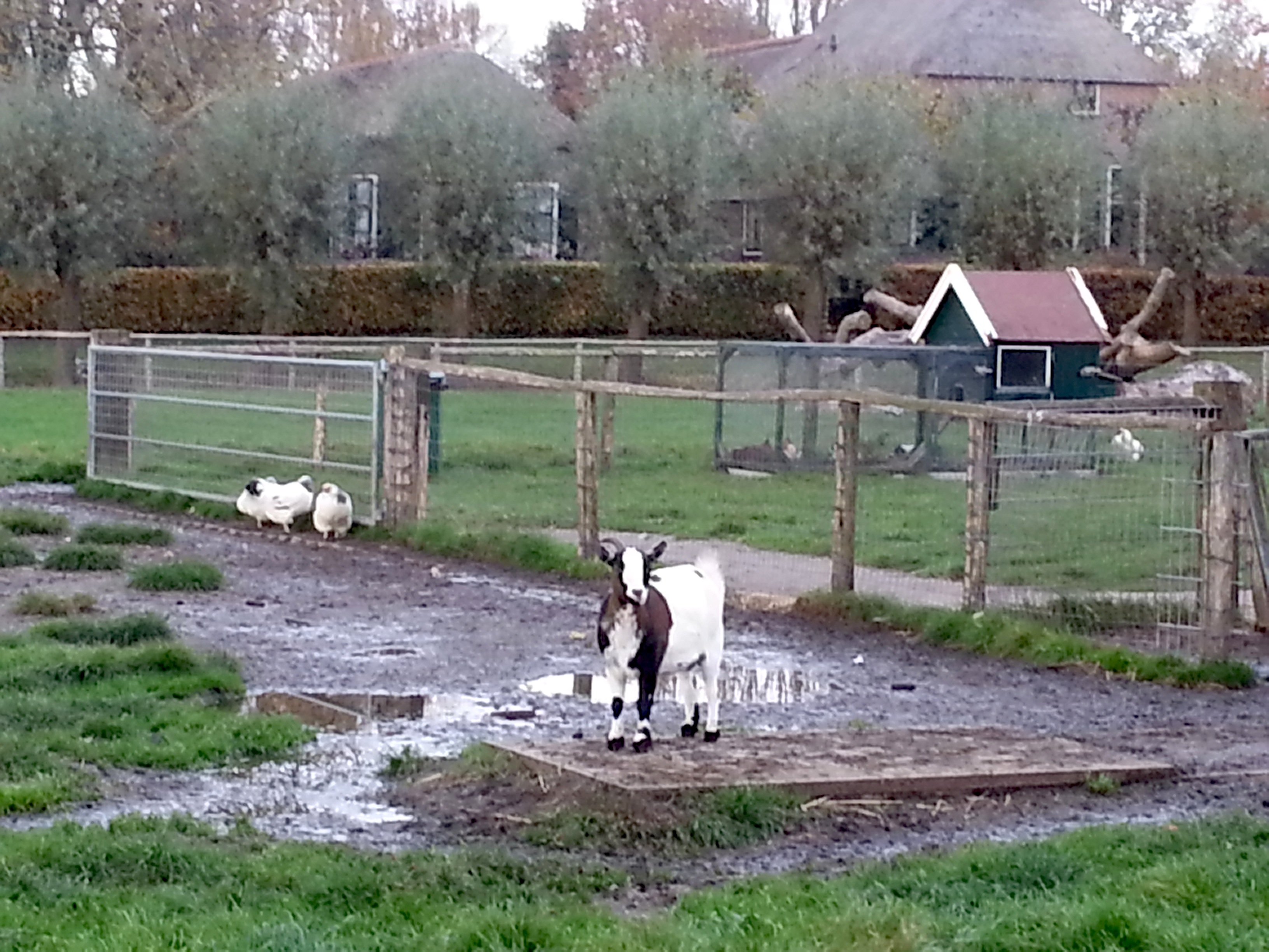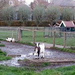 Op de foto’s, die maandagmiddag op twee locaties aan de Oude Wetering zijn genomen, lopen de kippen echter nog gewoon op open velden tussen ganzen, zwanen en geiten. Natuurlijk is de kans klein dat het hoogpathogene vogelgriepvirus uitgerekend in deze dieren toeslaat, maar het druist wel in tegen de landelijke regels die er gelden voor deze dieren.
