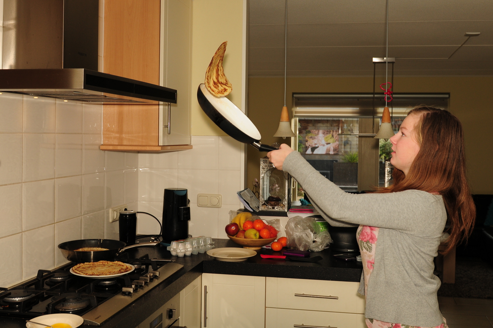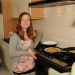 Na de laatste spelletjesmiddag, afgelopen dinsdag, wilden ze graag nog één ding doen voor de Syriers. Samen met Mirjam Kupers heeft Jeannet daarom leden van de Fontein gevraagd om vandaag pannenkoeken te bakken voor de vluchtelingen. Jeannet: “Eerst zouden we zo’n 900 pannenkoeken bakken. Maar omdat de vluchtelingen nu met grote aantallen de IJsselhallen verlaten, is dit aantal teruggebracht naar zo’n 350 pannenkoeken voor de nu nog zo’n 70 vluchtelingen in de IJselhallen.” De pannenkoeken zijn vandaag door 26 mensen uit de Fonteinkerk gebakken en door anderen is voor de stroop, poedersuiker en jam gezorgd.
