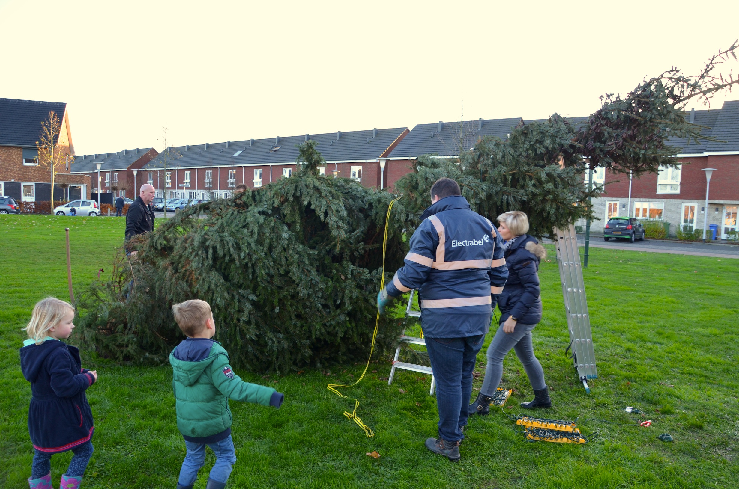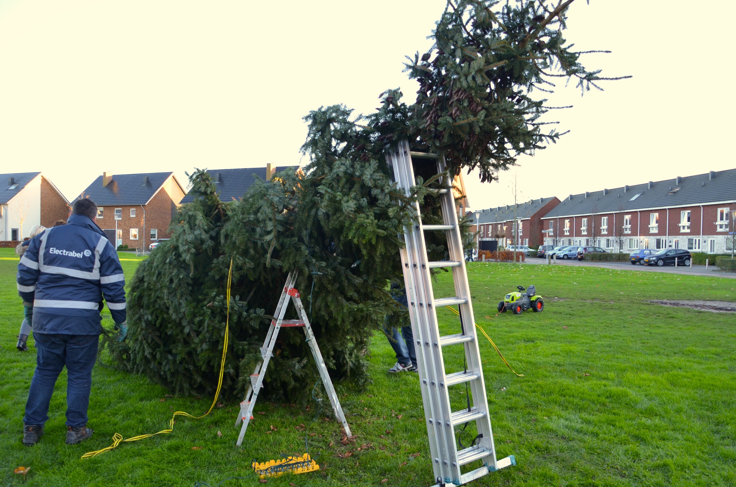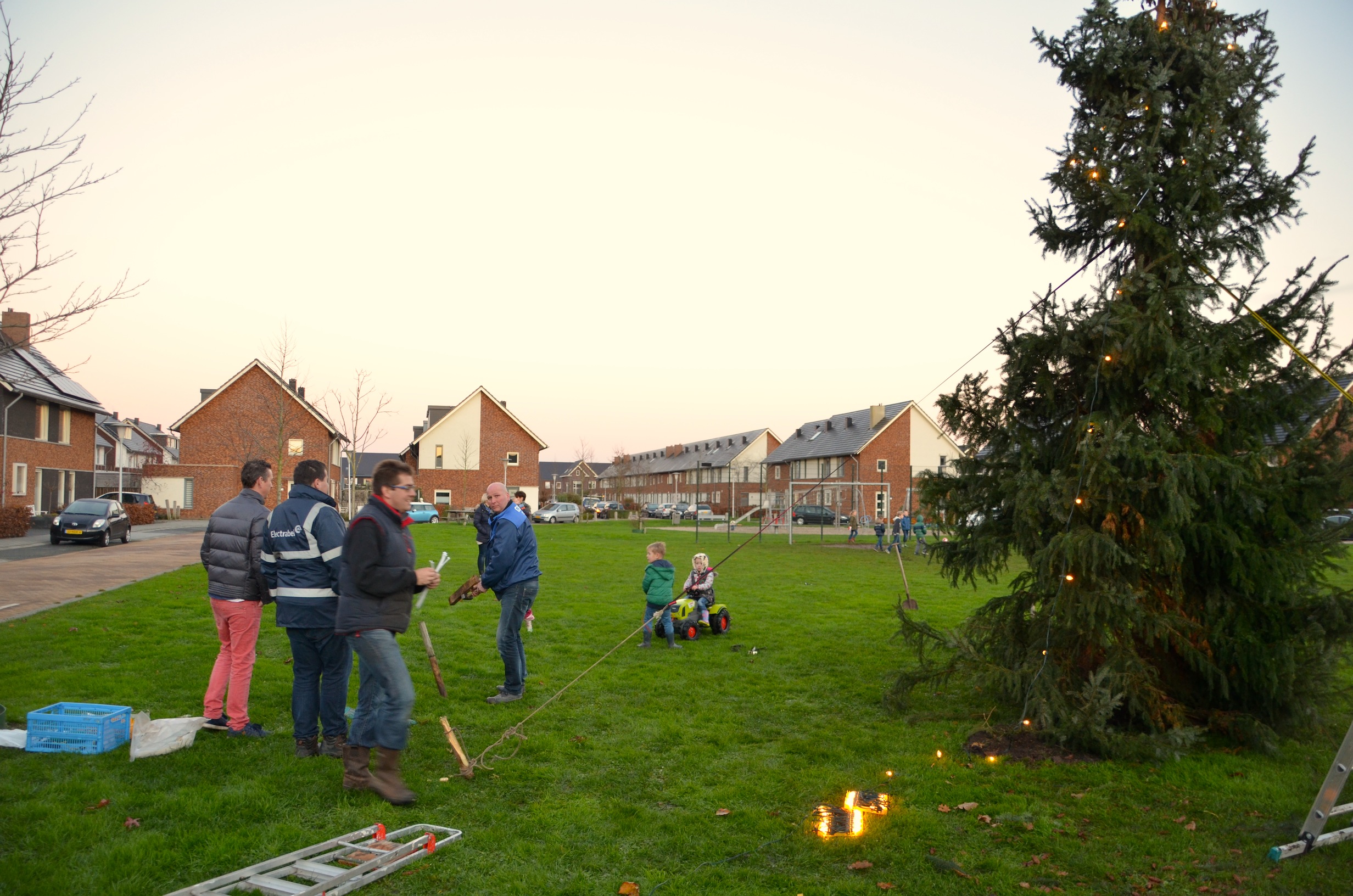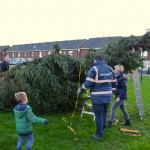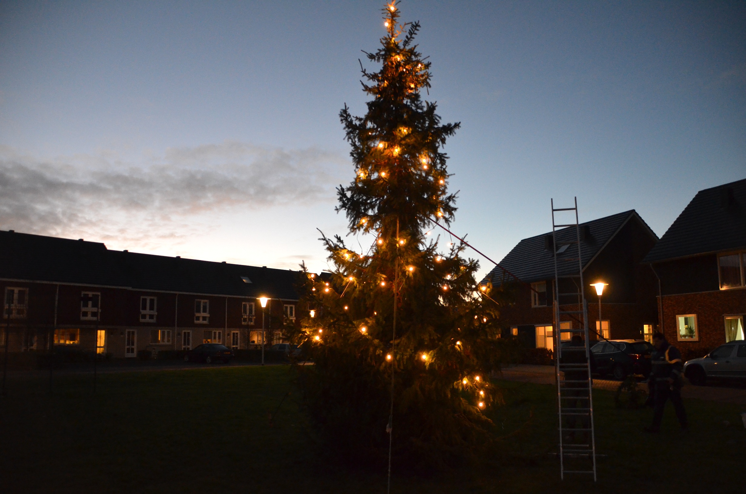 Sinterklaas heeft de territoriale wateren van Nederland nog niet eens verlaten of de eerste kerstbomen verrijzen in Stadshagen. Zaterdagmiddag ging de schop her en der in de grond om de buurtkerstbomen te planten. Waaronder aan de Benthuislaan, waar de bewoners hun handen vol hadden aan een enorme kerstboom.