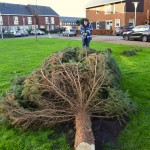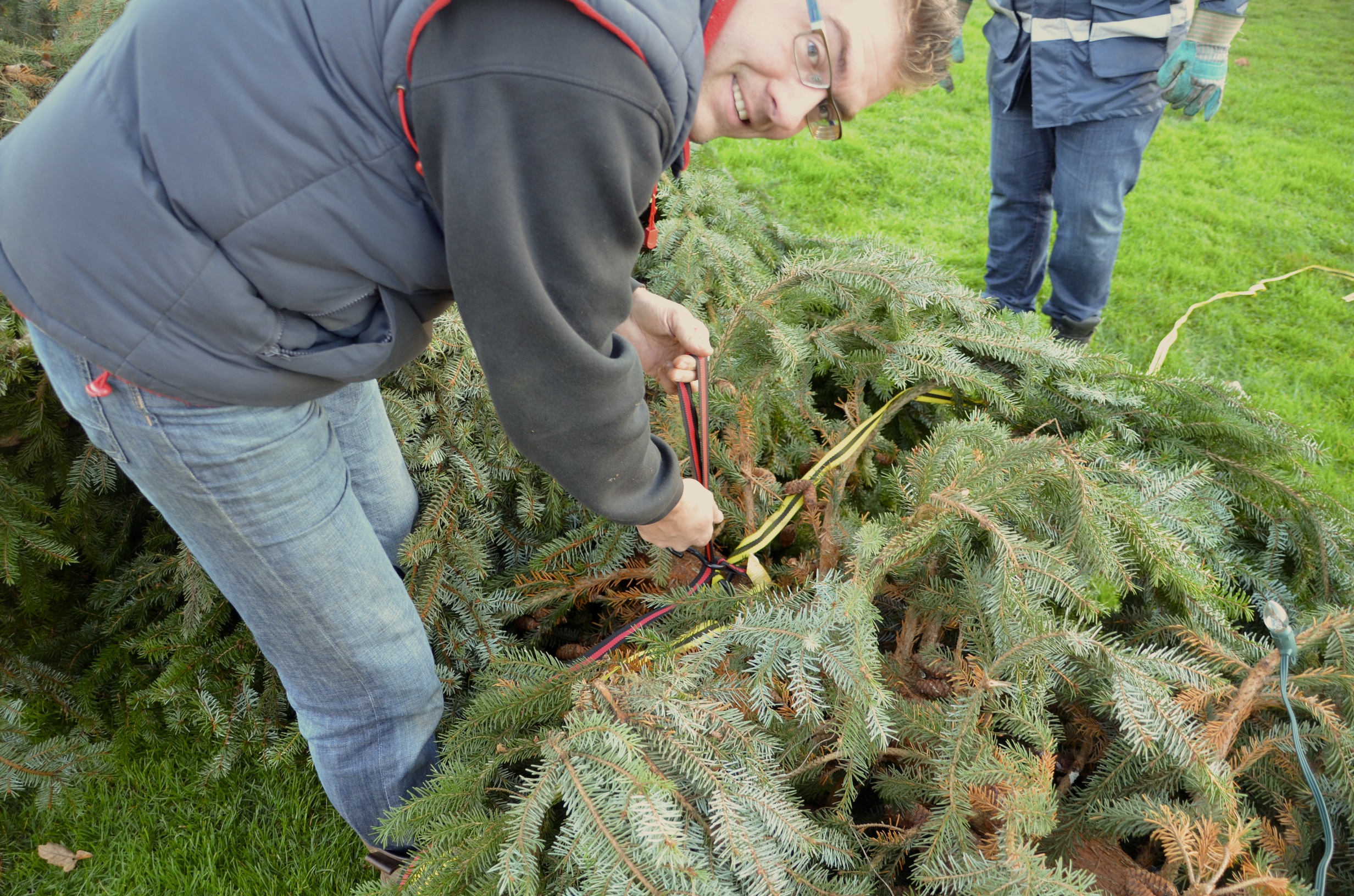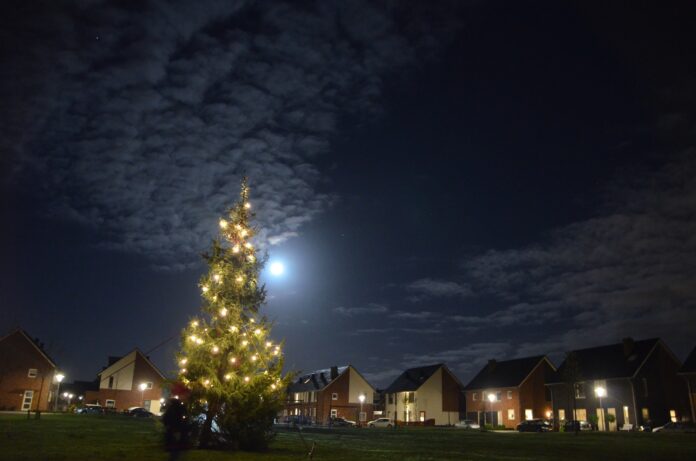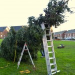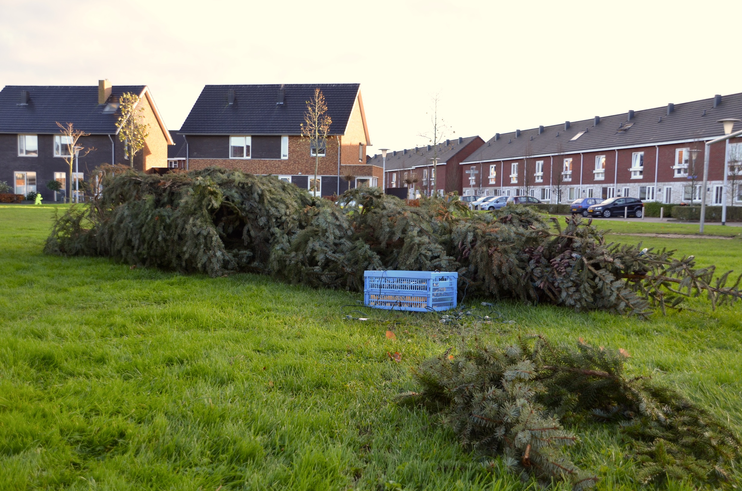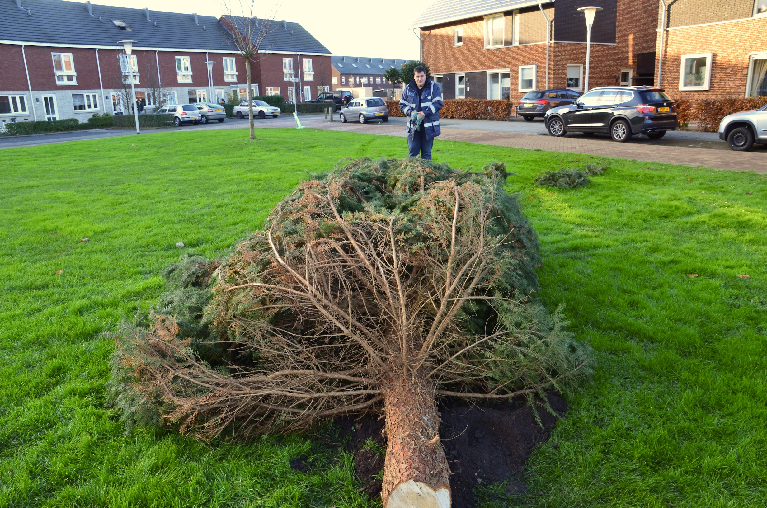 Sinterklaas heeft de territoriale wateren van Nederland nog niet eens verlaten of de eerste kerstbomen verrijzen in Stadshagen. Zaterdagmiddag ging de schop her en der in de grond om de buurtkerstbomen te planten. Waaronder aan de Benthuislaan, waar de bewoners hun handen vol hadden aan een enorme kerstboom.