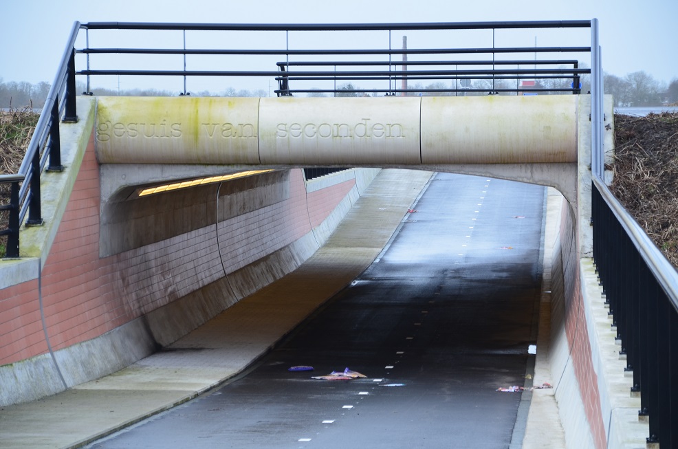 ‘Gesuis van seconden’ is de naam van de nieuwe fietstunnel onder de Hasselterweg in Breecamp-Oost. Maar voorlopig suist de wind alleen nog over een verlaten weg. Het wegdek van de nieuwe Hasselterweg en de nieuwe Boxemtunnel blijven waarschijnlijk nog bijna een jaar er zo bij liggen. De procedure over de onteigening van het laatste perceel dat nodig is voor de aanleg van de weg, zorgt voor oponthoud om de werkzaamheden af te ronden.