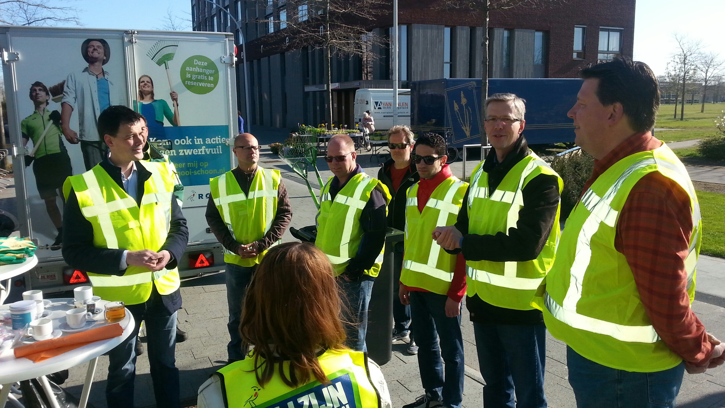 Wethouder Filip van As stelde deze samenwerking tussen winkeliersvereniging en bewonersverenging enorm op prijs en kwam daarom de deelnemers bij het begin van de opruimactie toespreken en aanmoedigen. “Jullie geven het goede voorbeeld. Een schone omgeving nodigt iedereen uit om die ook schoon te houden.” Onlangs was er ook een dergelijke opschoonactie in de Uiterwaarden van Holtenbroek. Ook daar kwamen veel vrijwilligers in actie tegen zwerfvuil. “Een schone omgeving gaat gelukkig veel mensen aan het hart. We willen graag laten zien dat alle inwoners van Zwolle gefaciliteerd kunnen worden bij hun opruimacties”.