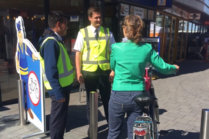 Donderdag 21 mei eindigde een bijzondere samenwerking tussen de winkeliers van Stadshagen en de onderwijsinstellingen Landstede en Deltion. In de weken na Pasen werkten de studenten van de opleiding Handhaving, Toezicht en Veiligheid mee aan de campagne voor een fietsvrij winkelcentrum. Hun taak was het aanspreken van mensen die op de stoep en in de winkelstraat fietsen en mensen die hun fiets voor winkels parkeren.