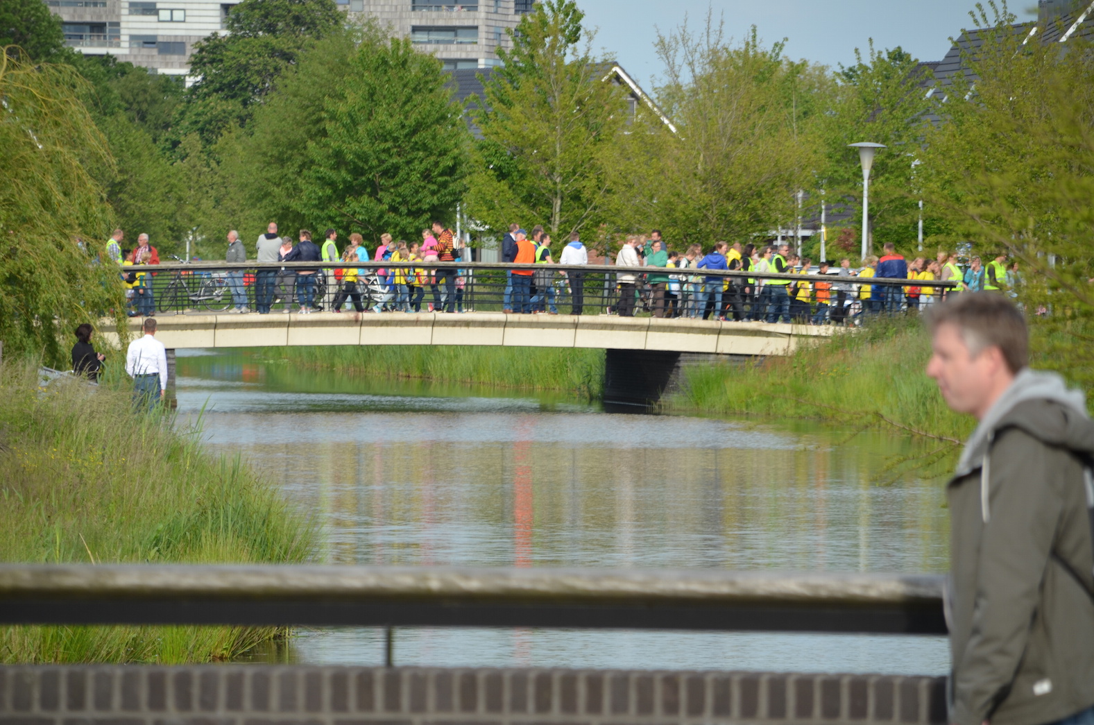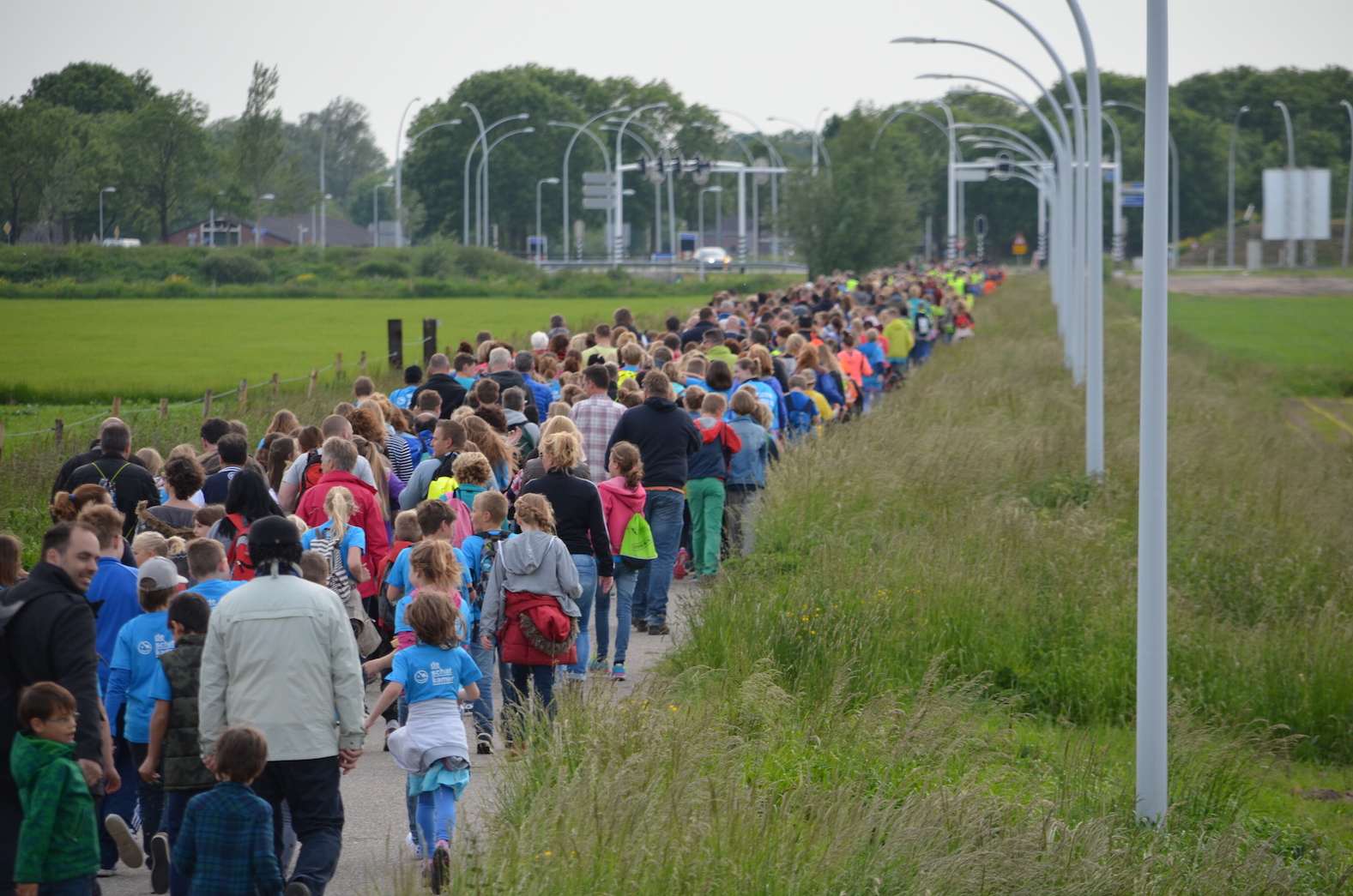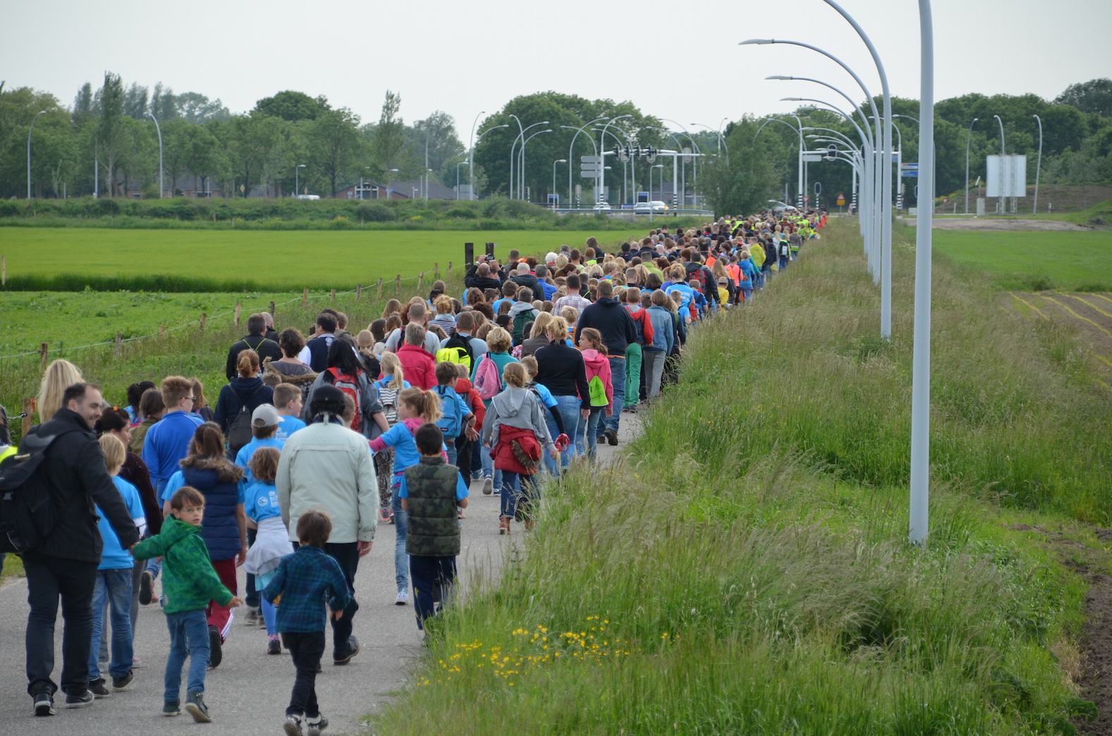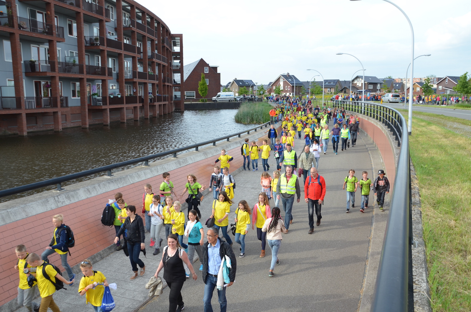 De Wandelvierdaagse van Zwolle is onder geweldige omstandigheden van start gegaan in Stadshagen. Onder een licht bewolkte hemel waar het zonnetje voorzichtig doorheen scheen, liepen duizenden kinderen en ouders door de wijk. Een aaneengesloten aan wandelaars liep over de Oude Wetering om na het Zonnehuis in verschillende richtingen op te splitsen. Een ongeduldige automobilist of fietser daargelaten was de eerste dag een groot succes.