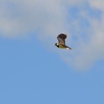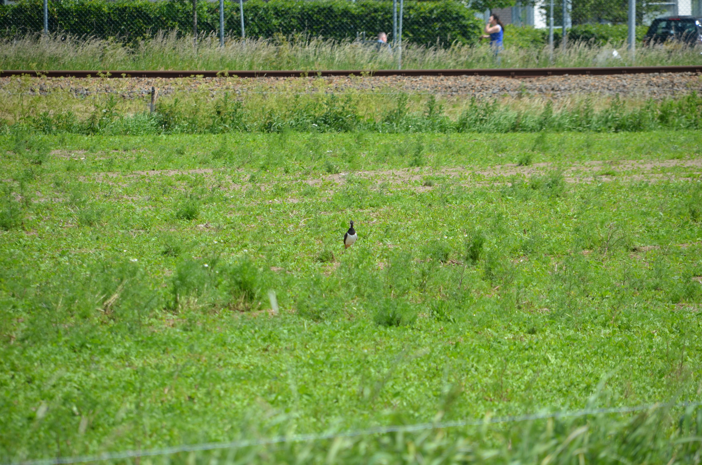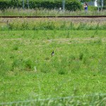 Wat overheerst is stilte, met zo nu en dan het geluid van een weidevogel. Te weinig bij de keurig gemaaide velden. Hebben de nesten daar de maaimachines wel overleefd? Maar zodra het wandelpad ons langs een veld met wild gras voert, klinkt er het zenuwachtige geroep van een kievit. Als we verder doorlopen springt de vogel op en vliegt met sierlijke bochten door de lucht; de kievit probeert ons weg te leiden van haar jongen. Drie hazen rennen vluchtig over het veld.