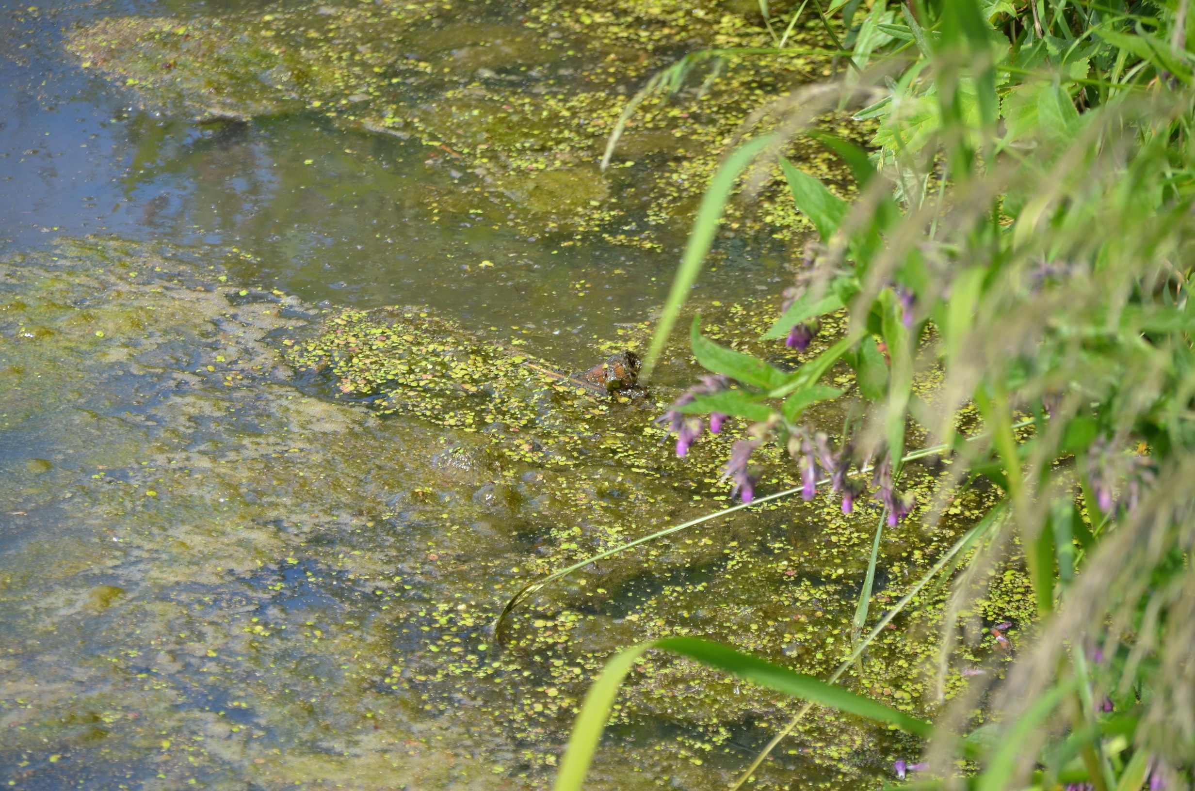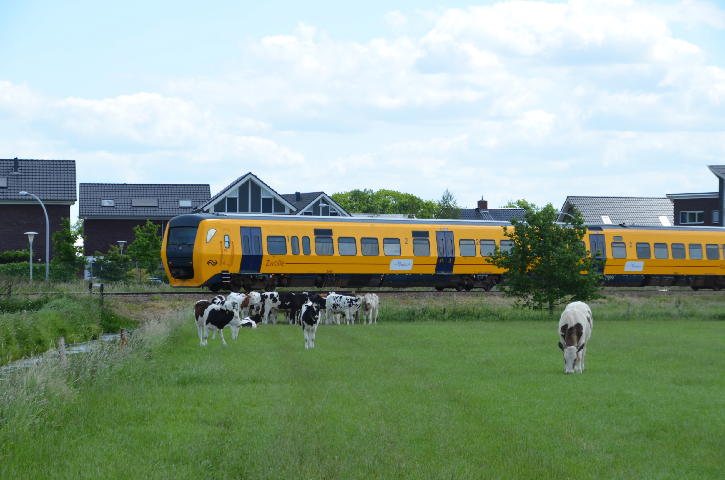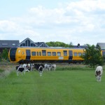 We lopen vanaf de Rozentunnel het wandelpad op en volgen ‘rode koeien’, bordjes die het wandelpad aangeven door het gebied. Na tien meter ben je de drukte rond Stadshagen vergeten. Kikkers springen verschikt in sloten van het onverwachte bezoek. In de verte zetten twee hazen het op een rennen, om halverwege met de oren gespitst de omgeving te observeren. Op de achtergrond loopt een kudde koeien nonchalant door de wei.
