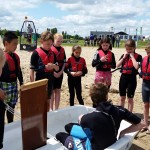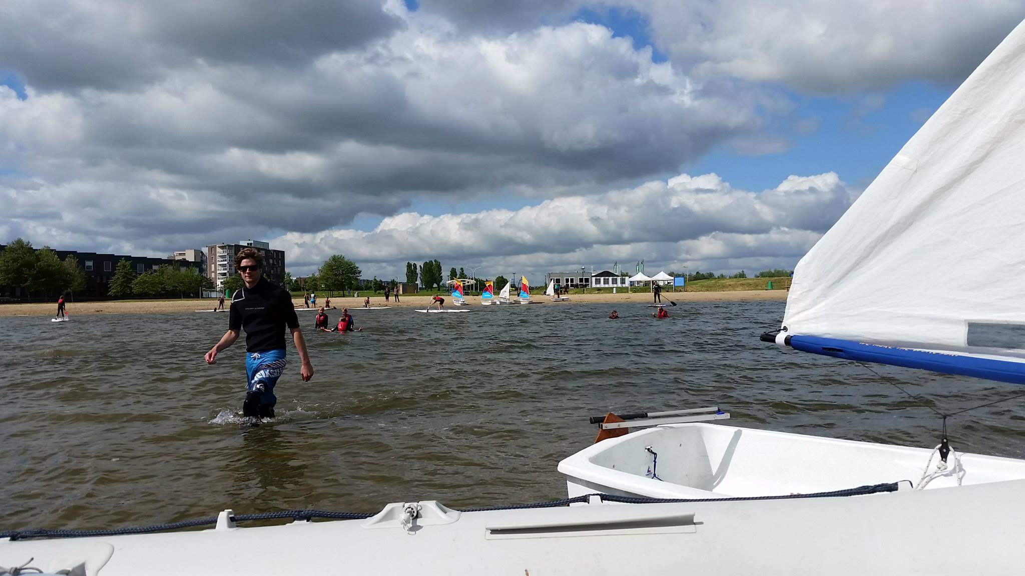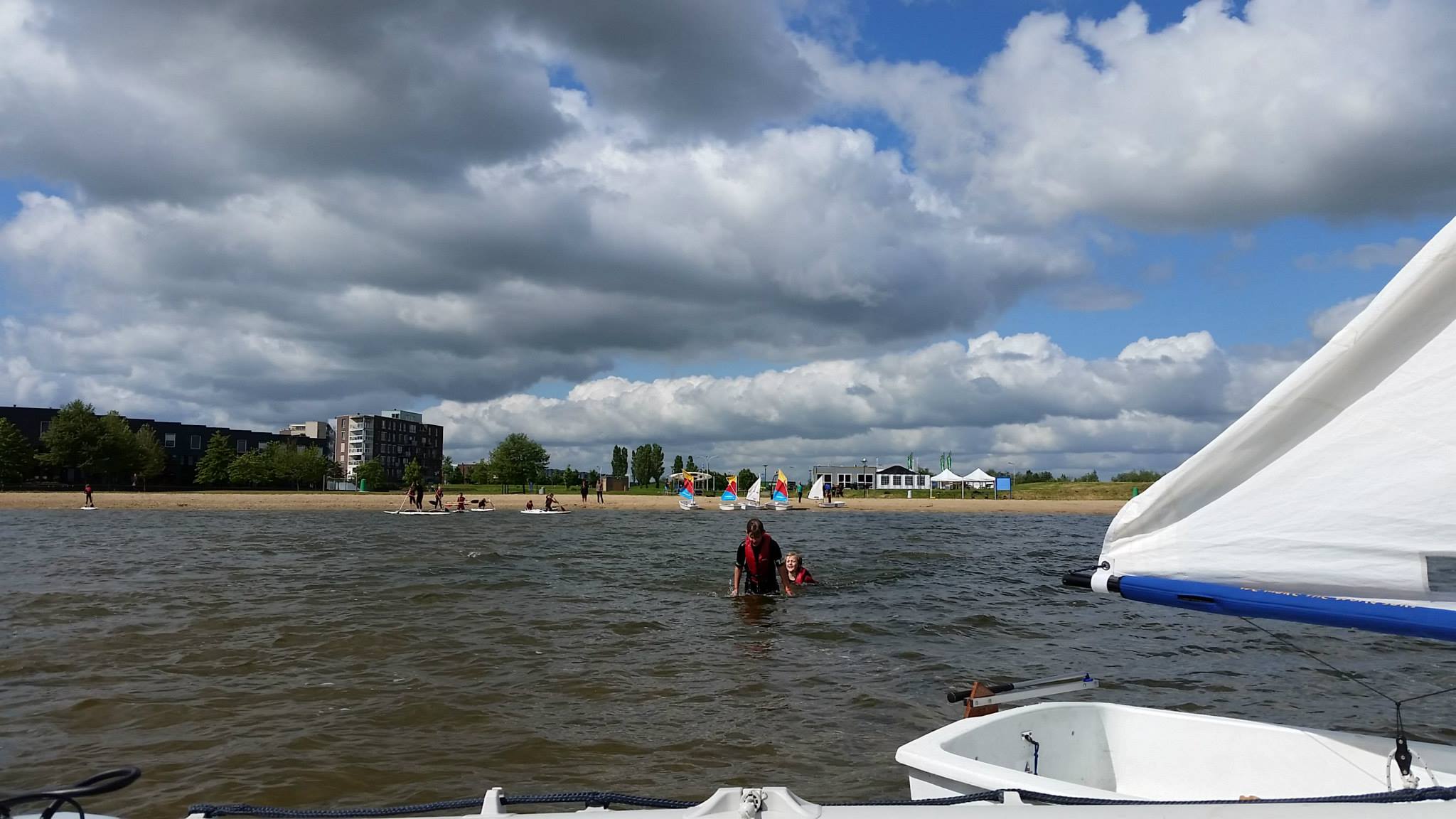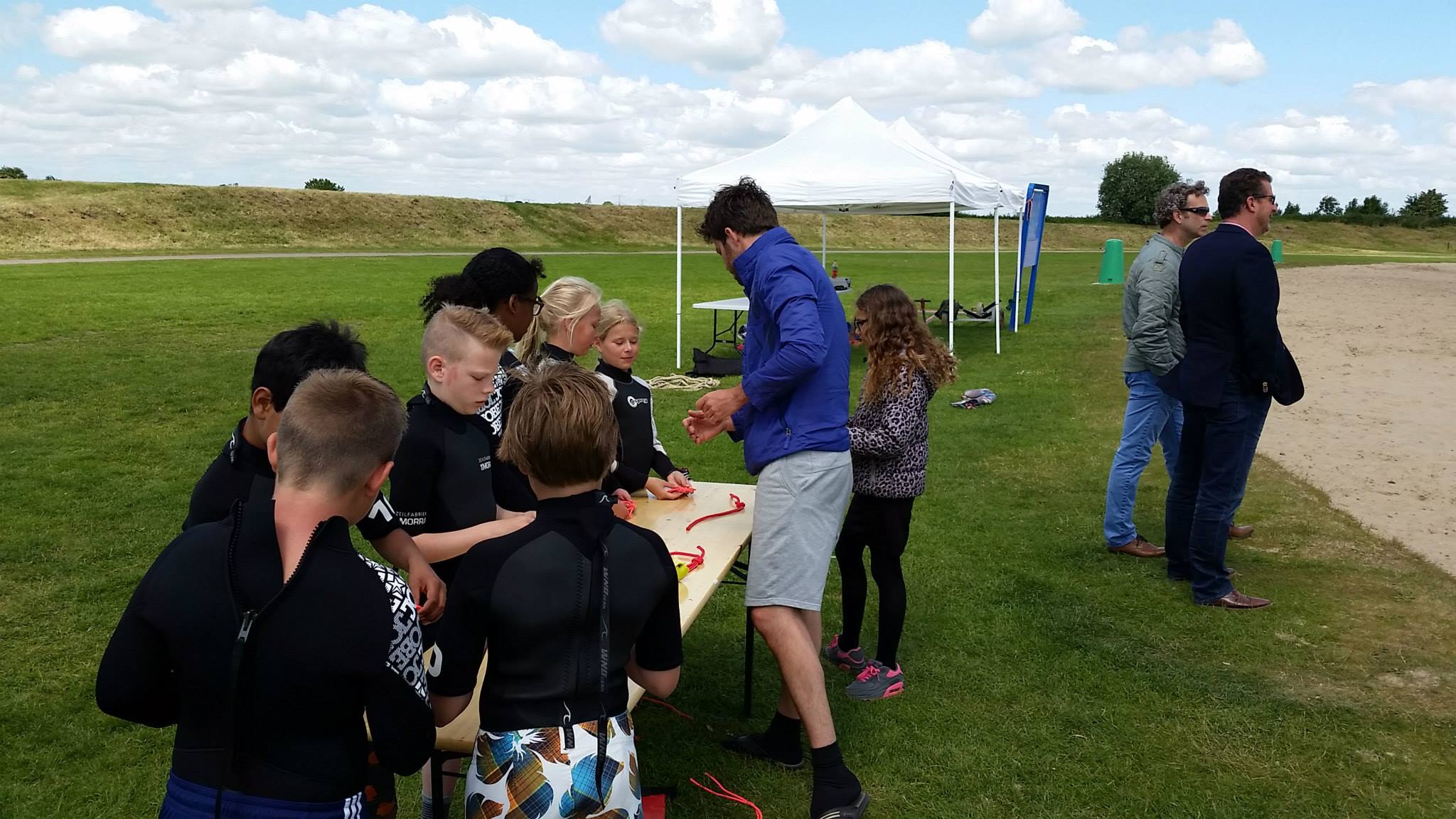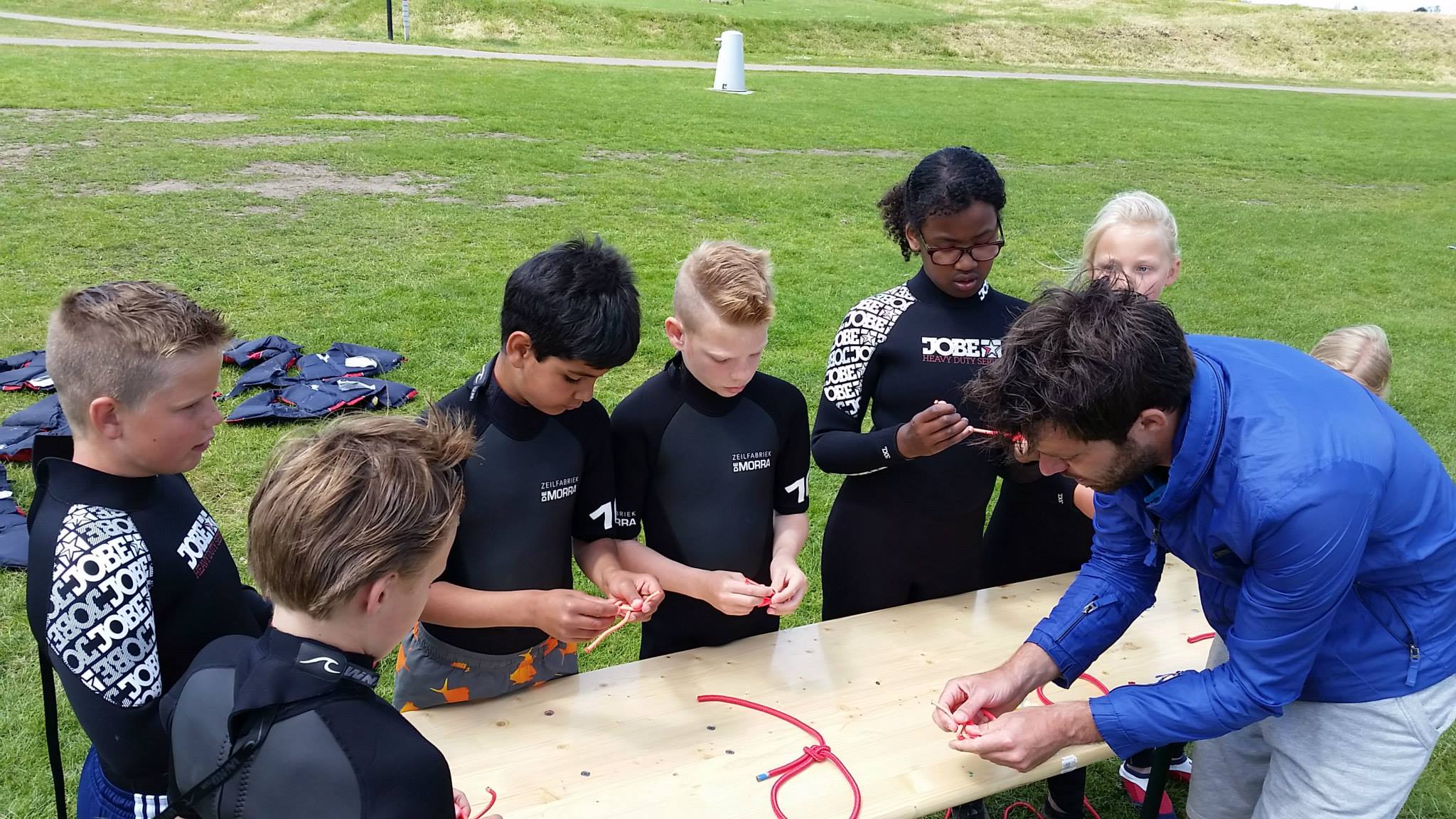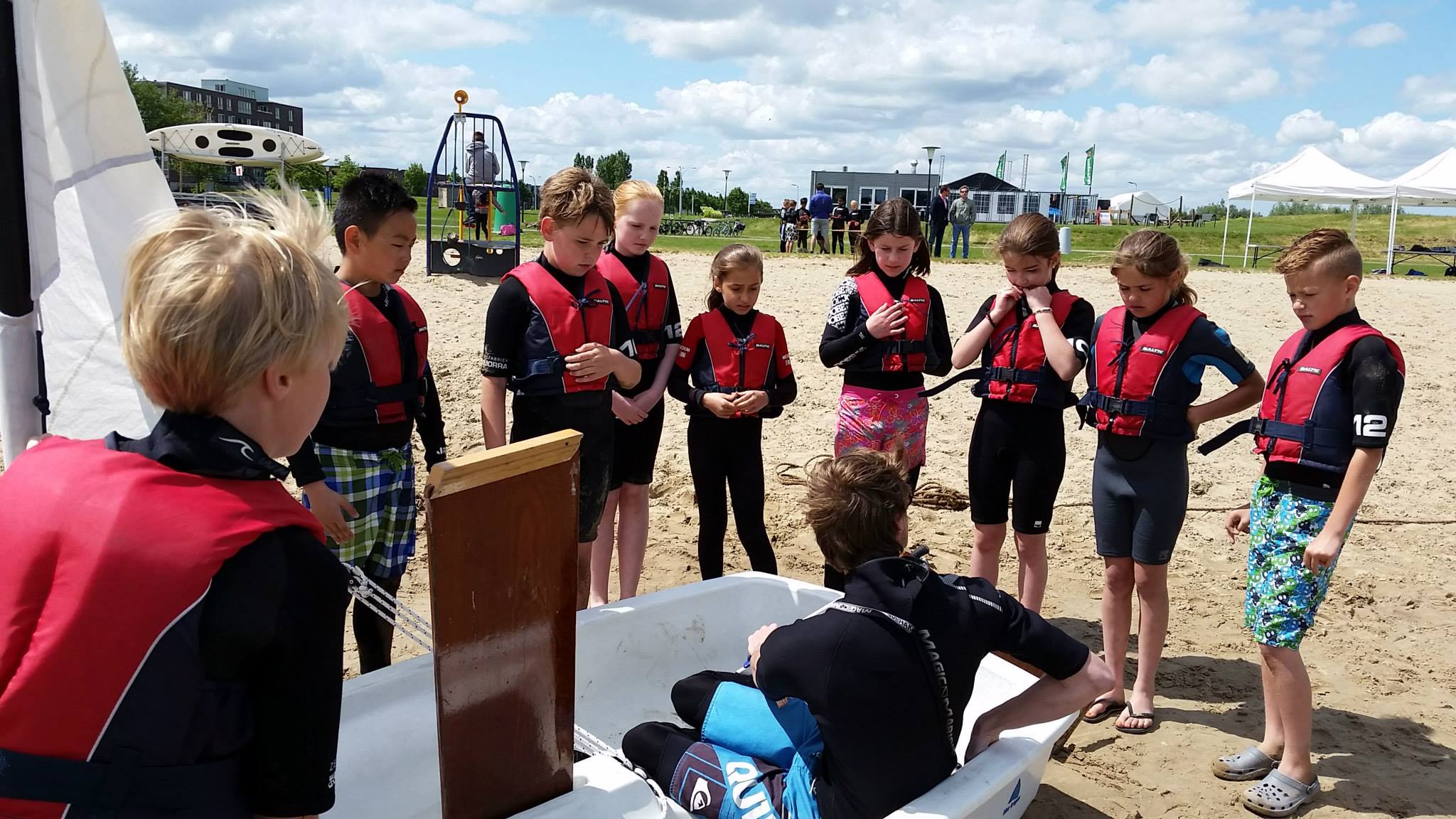 Bij aankomst van de klas werden alle kinderen voorzien van een wetsuit en een zwemvest en kon het spektakel beginnen. In groepen en onder begeleiding werd er gezeild in Optimisten, spelletjes gedaan op een sup en werden de eerste zeilknopen eigen gemaakt. Het weer werkte aardig mee en na alle onderdelen gehad te hebben, vertrokken de kinderen weer richting school.