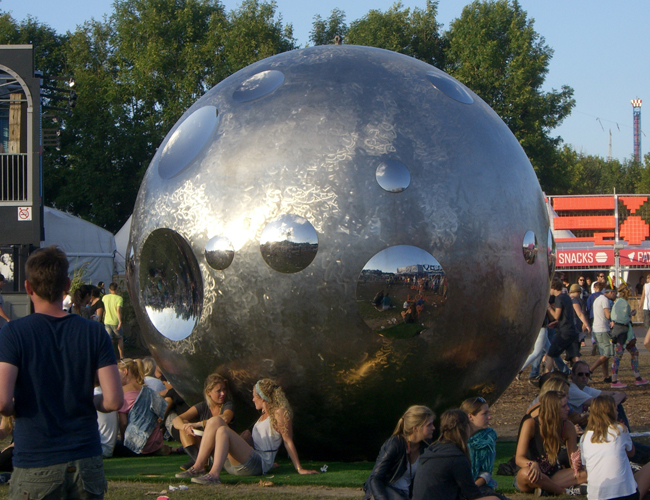 Grote stalen bol als kunstwerk in Twistvlietpark