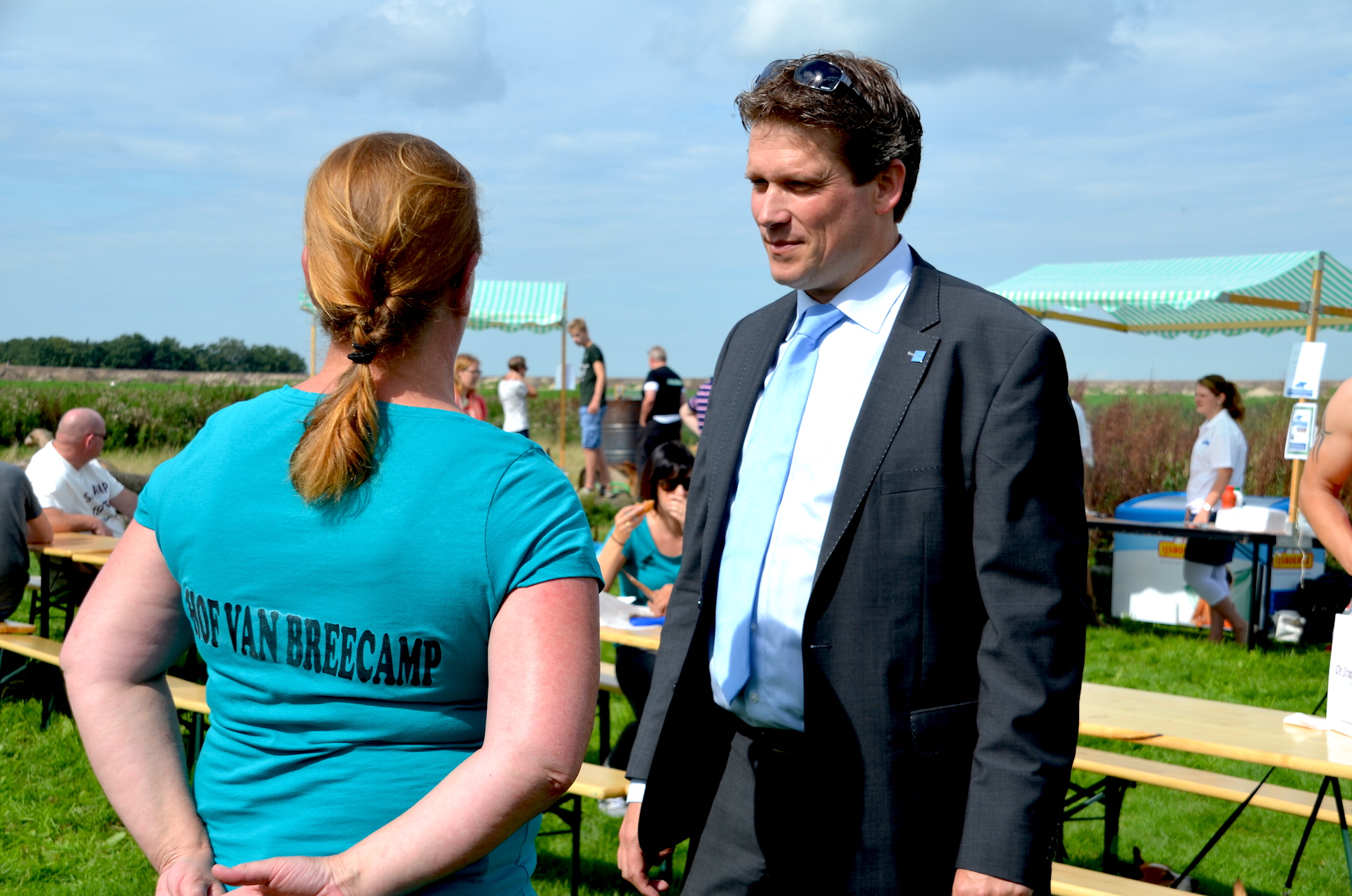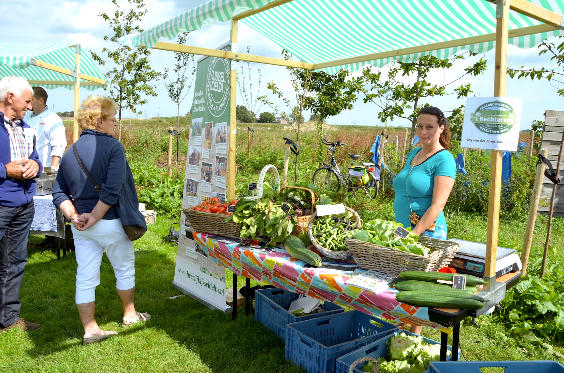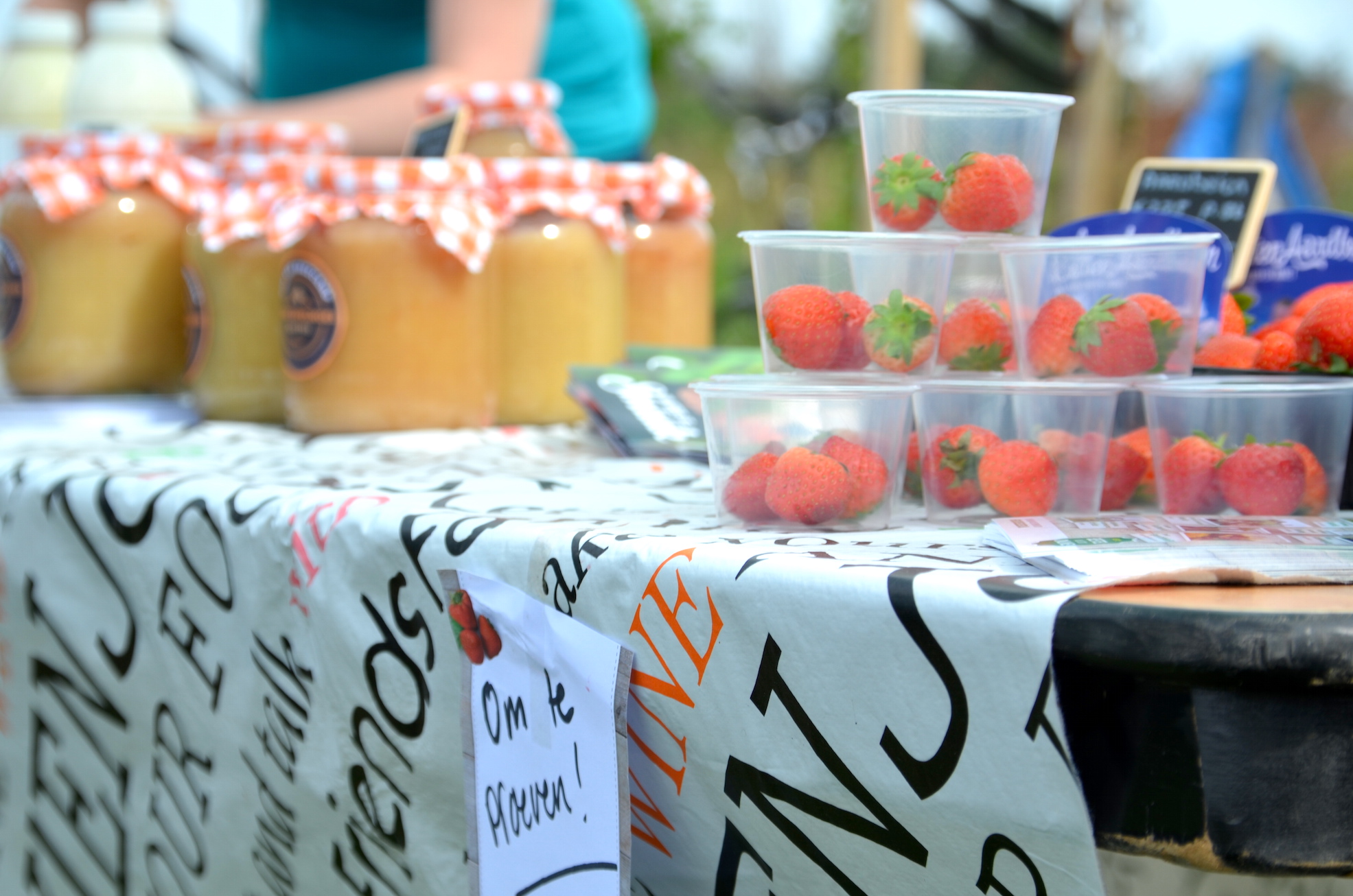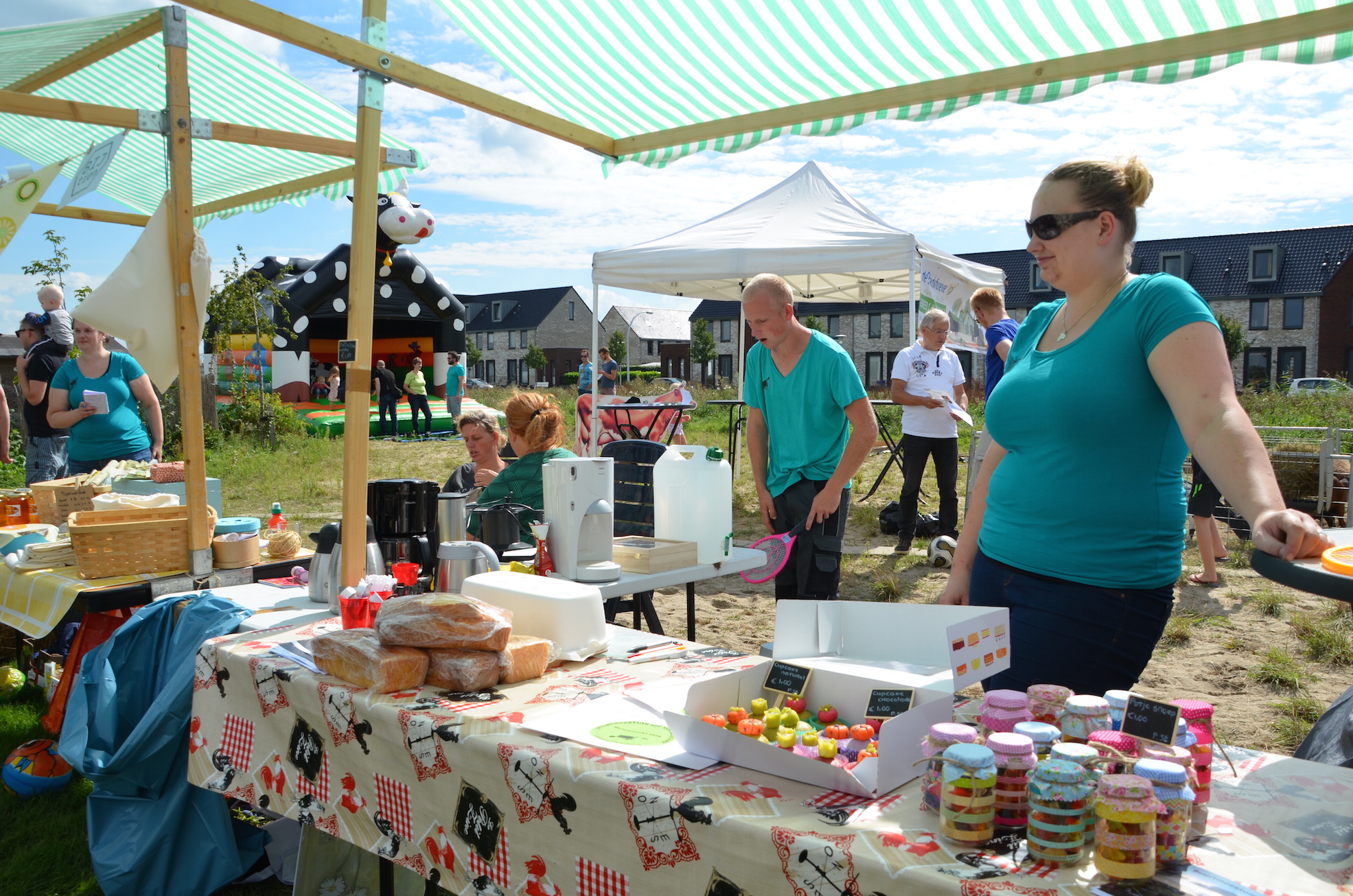 “Dit is echt een bijzondere prestatie”, zegt wethouder René de Heer enthousiast. Als vastgoedwethouder neemt hij een kijkje bij dit bijzondere initiatief. Want zowel de moestuin als het veld waarop de streekmarkt wordt gehouden is in het bezit van de gemeente. Maar door de vertraagde bouw mogen bewoners in goed overleg met de gemeente een tijdelijke bestemming zoeken voor de grond. In dit geval voor niets.