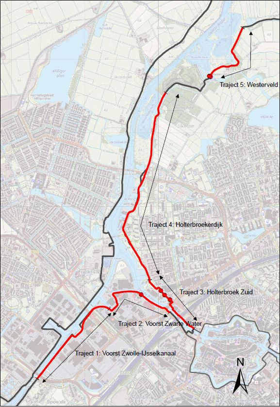 In totaal moet 7,5 kilometer van de dijken langs de oostoever van het Zwolle-IJsselkanaal en Zwarte Water worden aangepakt. Vanaf deze maand onderzoekt het waterschap welke maatregelen het beste genomen kunnen worden. Hierbij wordt gekeken naar verschillende varianten van dijkversterking maar ook innovatieve technieken. Het is een lange termijn plan: tot 2017 vinden verkenningen plaats die vervolgens tot 2019 worden de plannen uitgewerkt. De daadwerkelijke uitvoering staat gepland voor de periode 2020-2022.