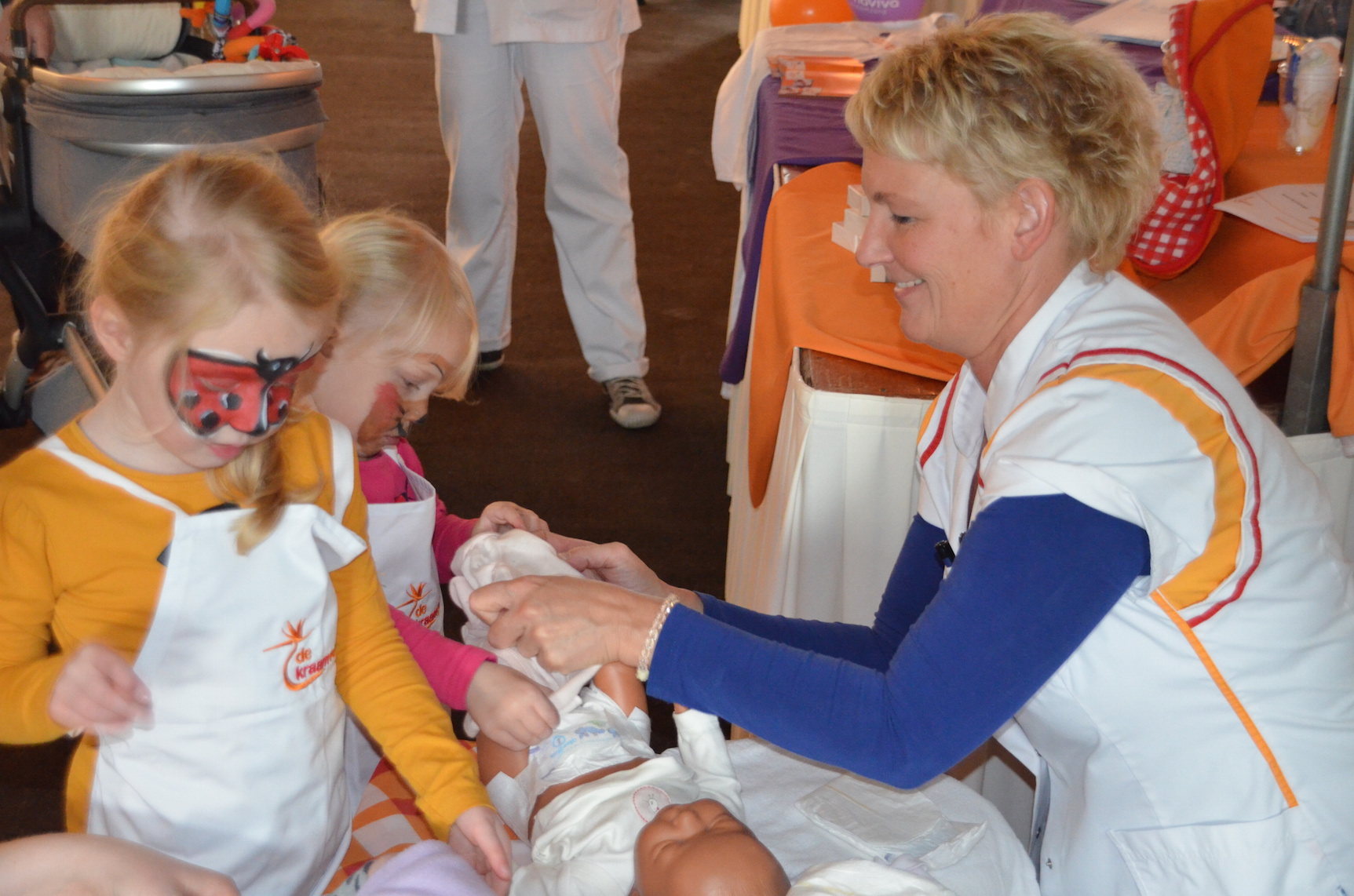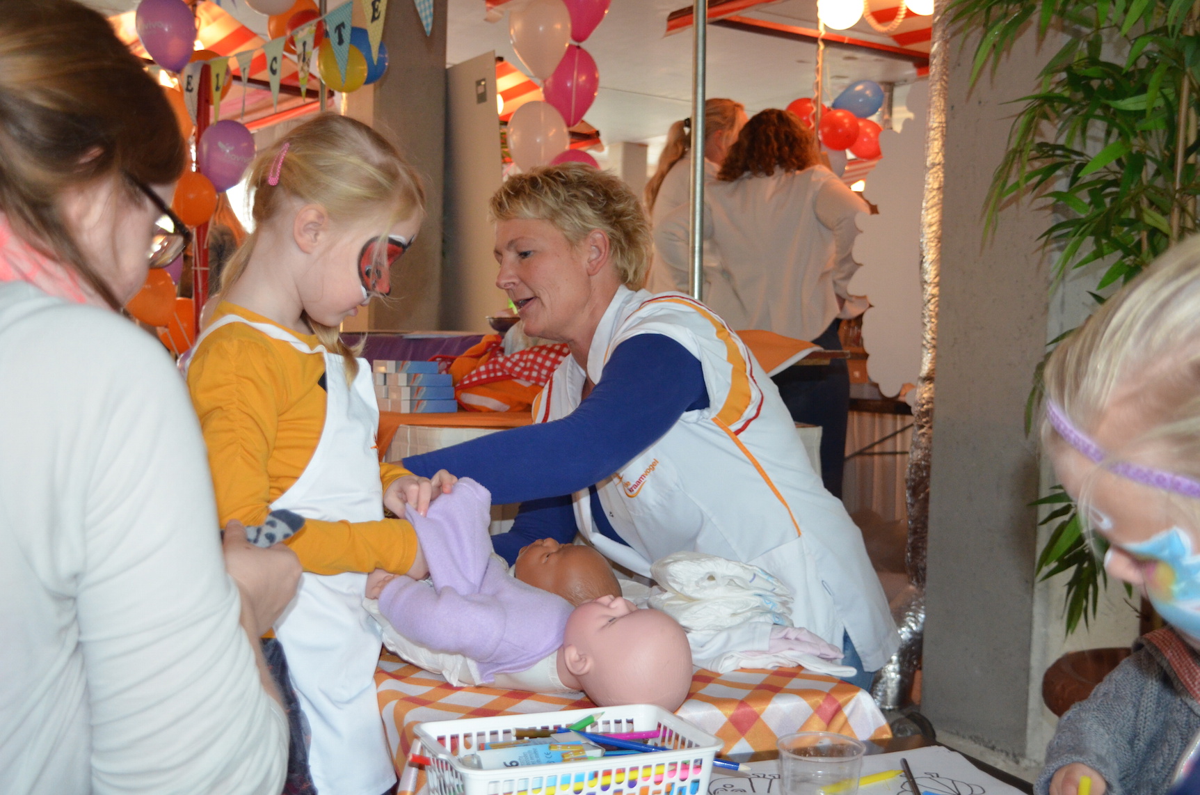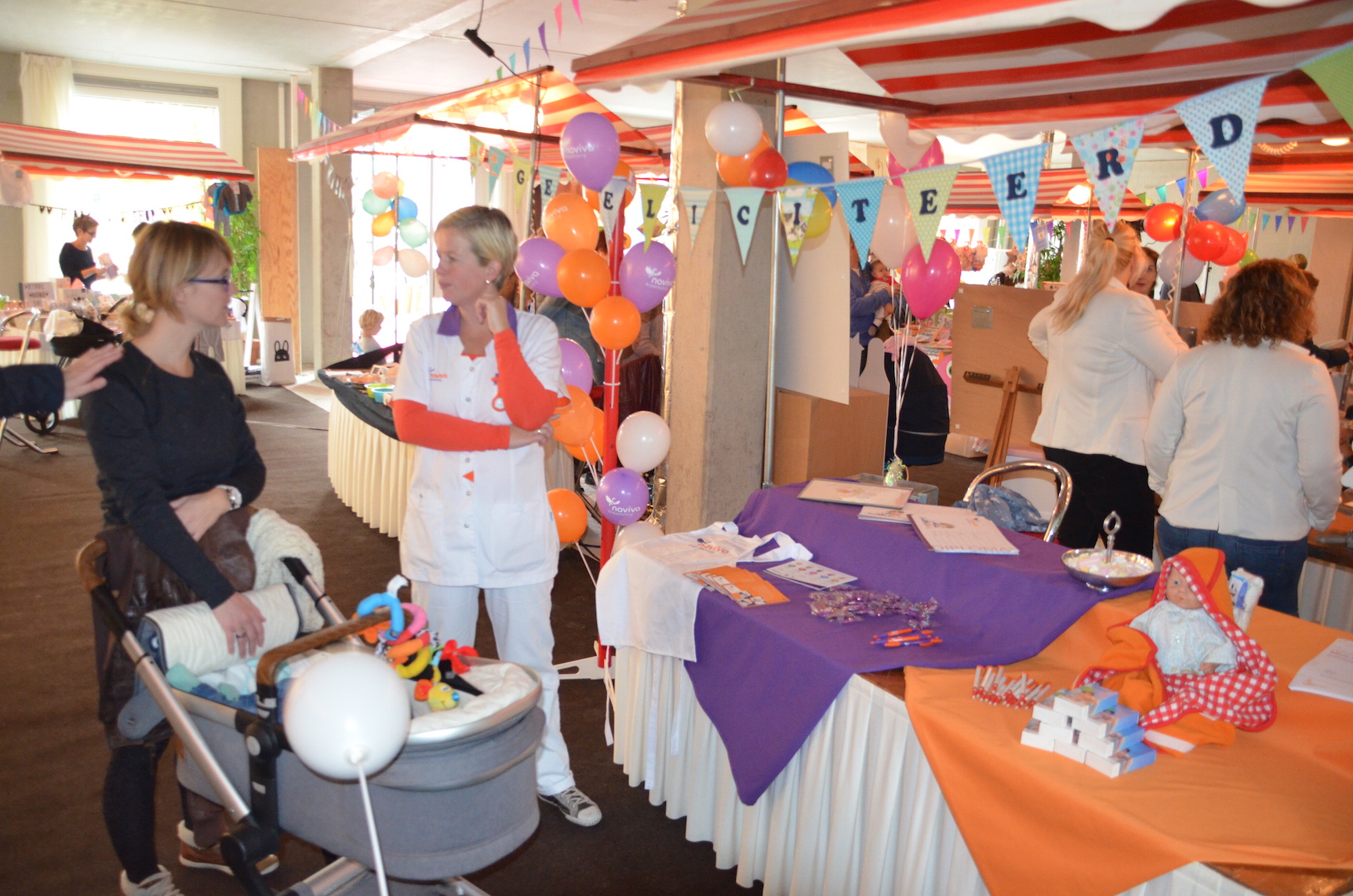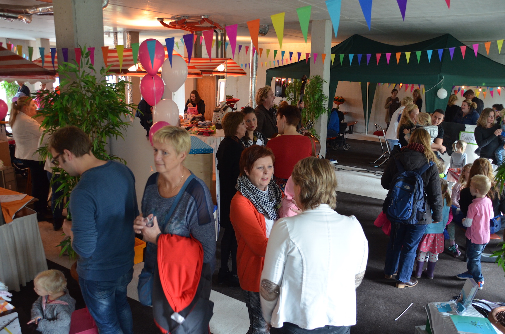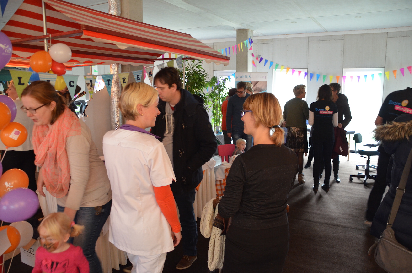 Voor het jubileum werd er naast het Verloskundigen Huys een ruimte afgehuurd waar naast muziek, schmink voor de kinderen ook kraampjes van bedrijven stonden die betrokken zijn bij de kraamzorg en geboortes in de wijk. Een fotograaf zette gezinnen, zwangeren en kinderen op de foto. En een kiekje met de jubilerende verloskundigen kon ook niet missen.