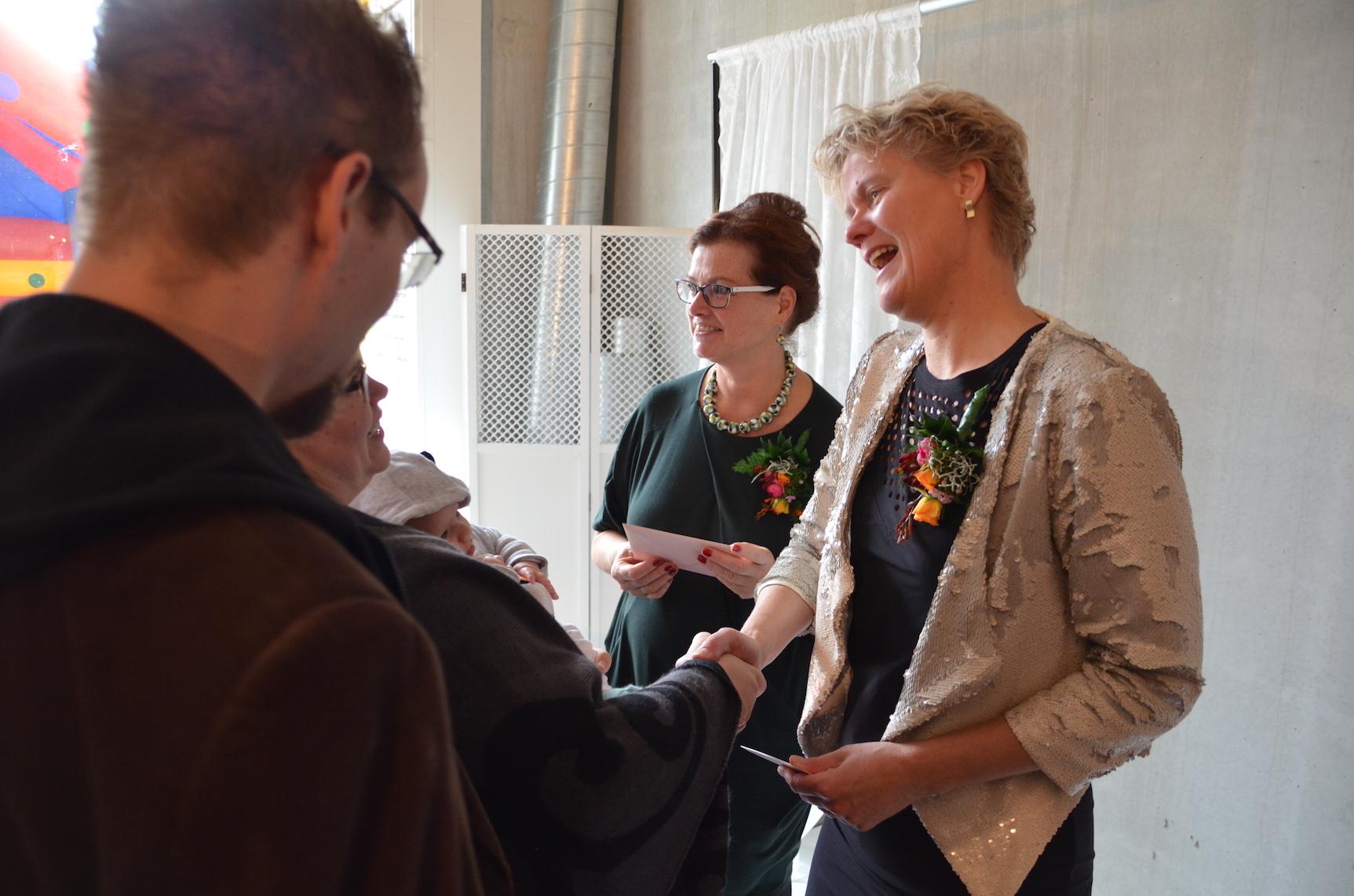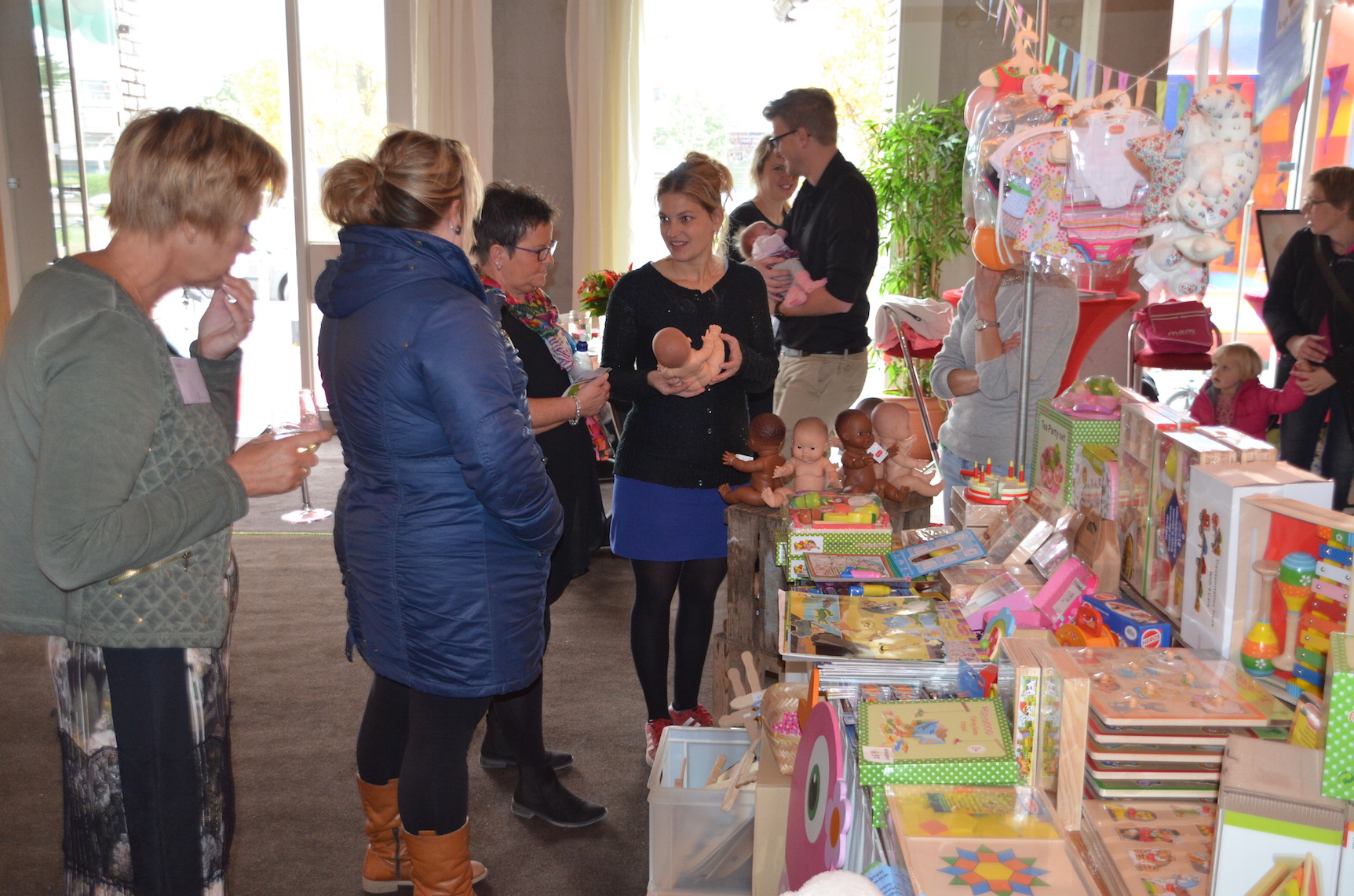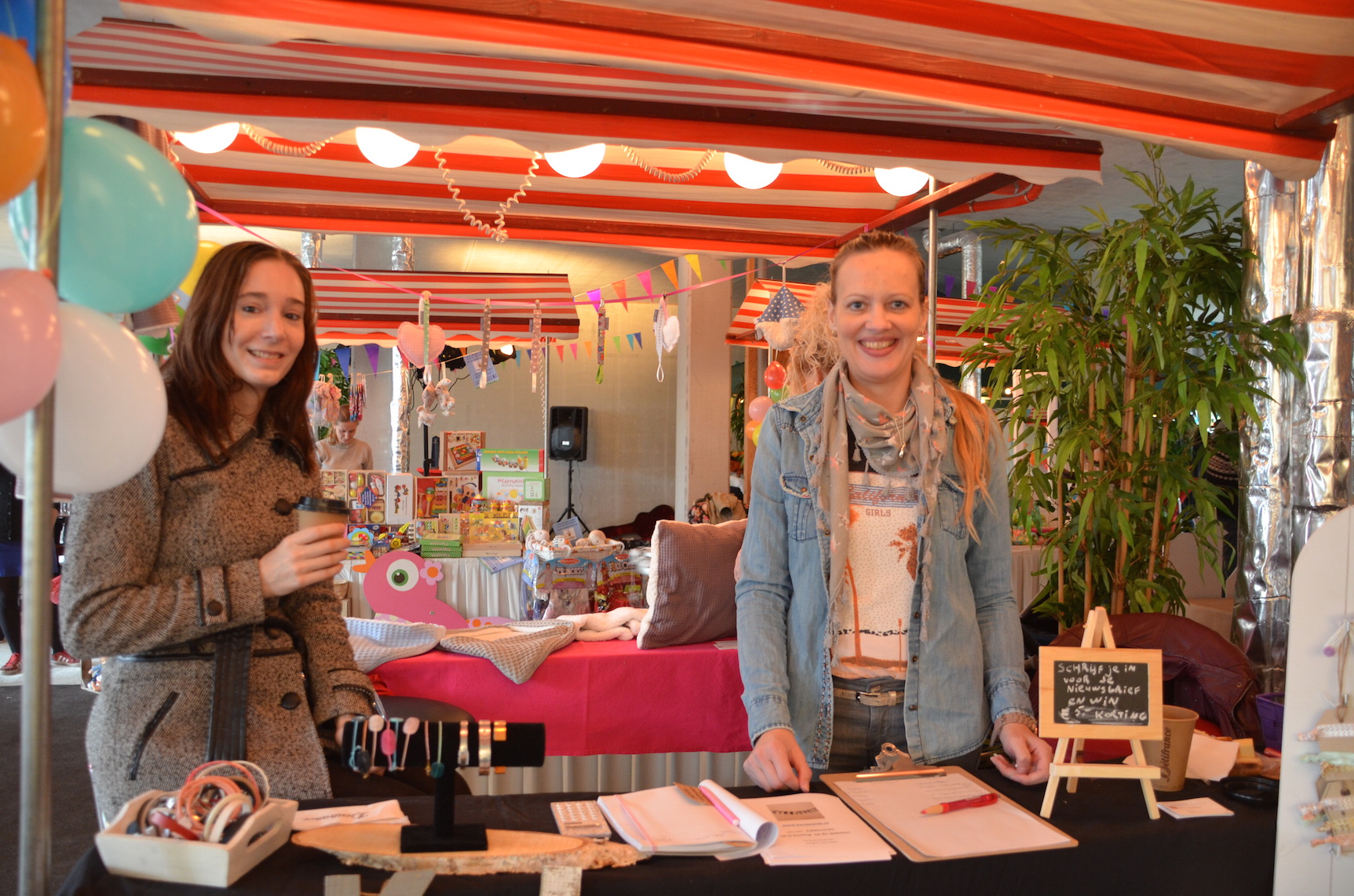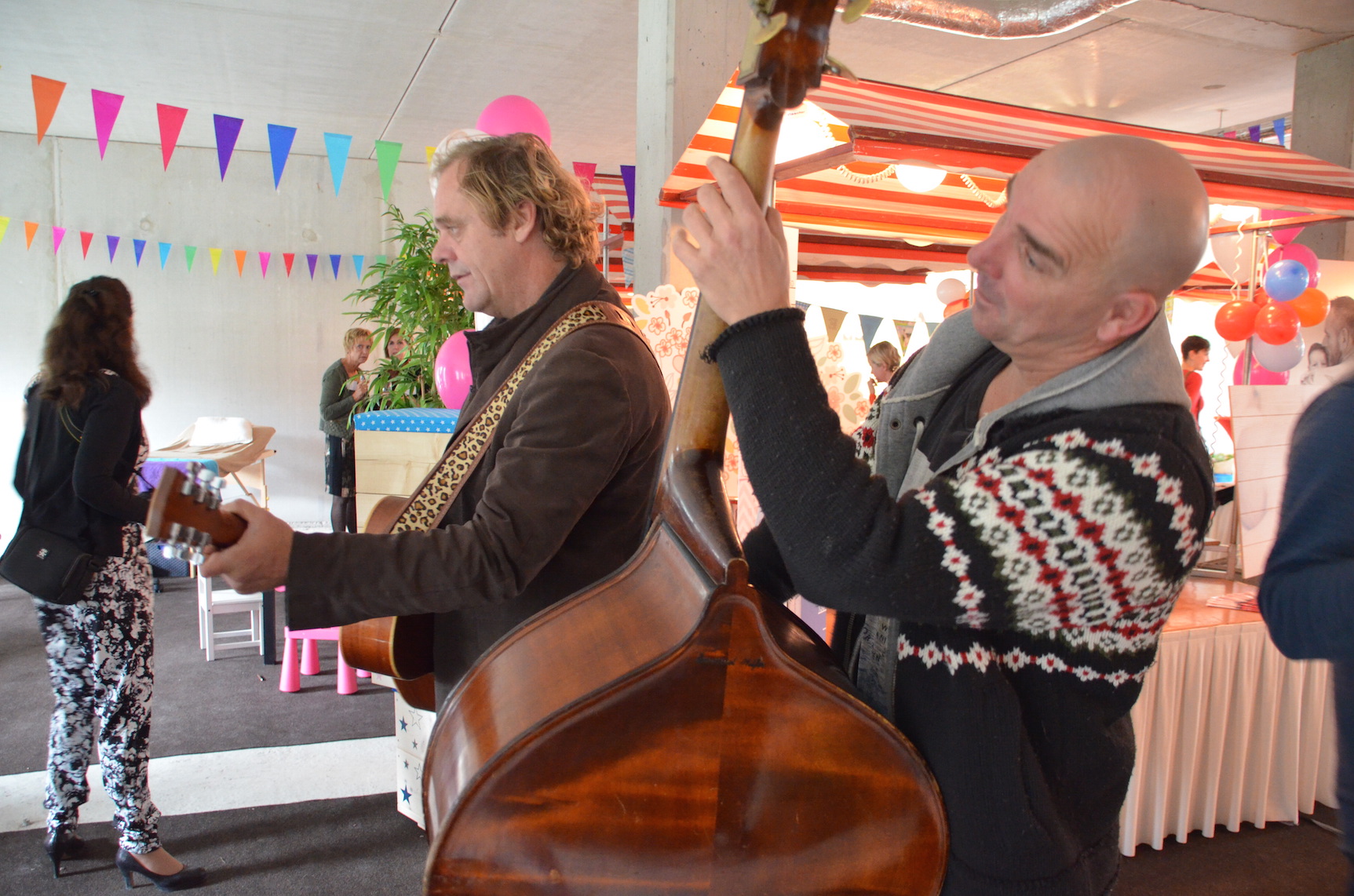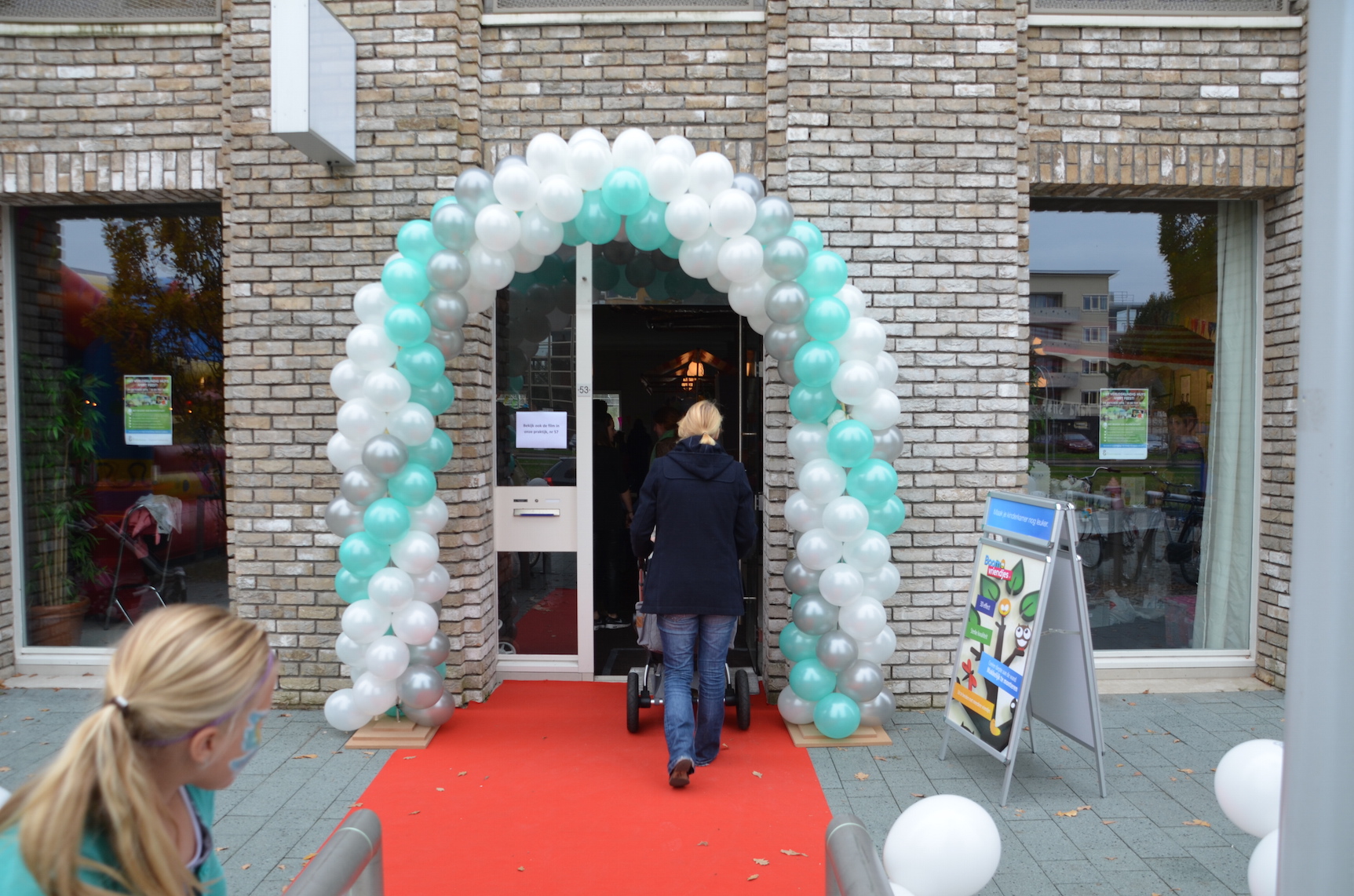 Voor het jubileum werd er naast het Verloskundigen Huys een ruimte afgehuurd waar naast muziek, schmink voor de kinderen ook kraampjes van bedrijven stonden die betrokken zijn bij de kraamzorg en geboortes in de wijk. Een fotograaf zette gezinnen, zwangeren en kinderen op de foto. En een kiekje met de jubilerende verloskundigen kon ook niet missen.