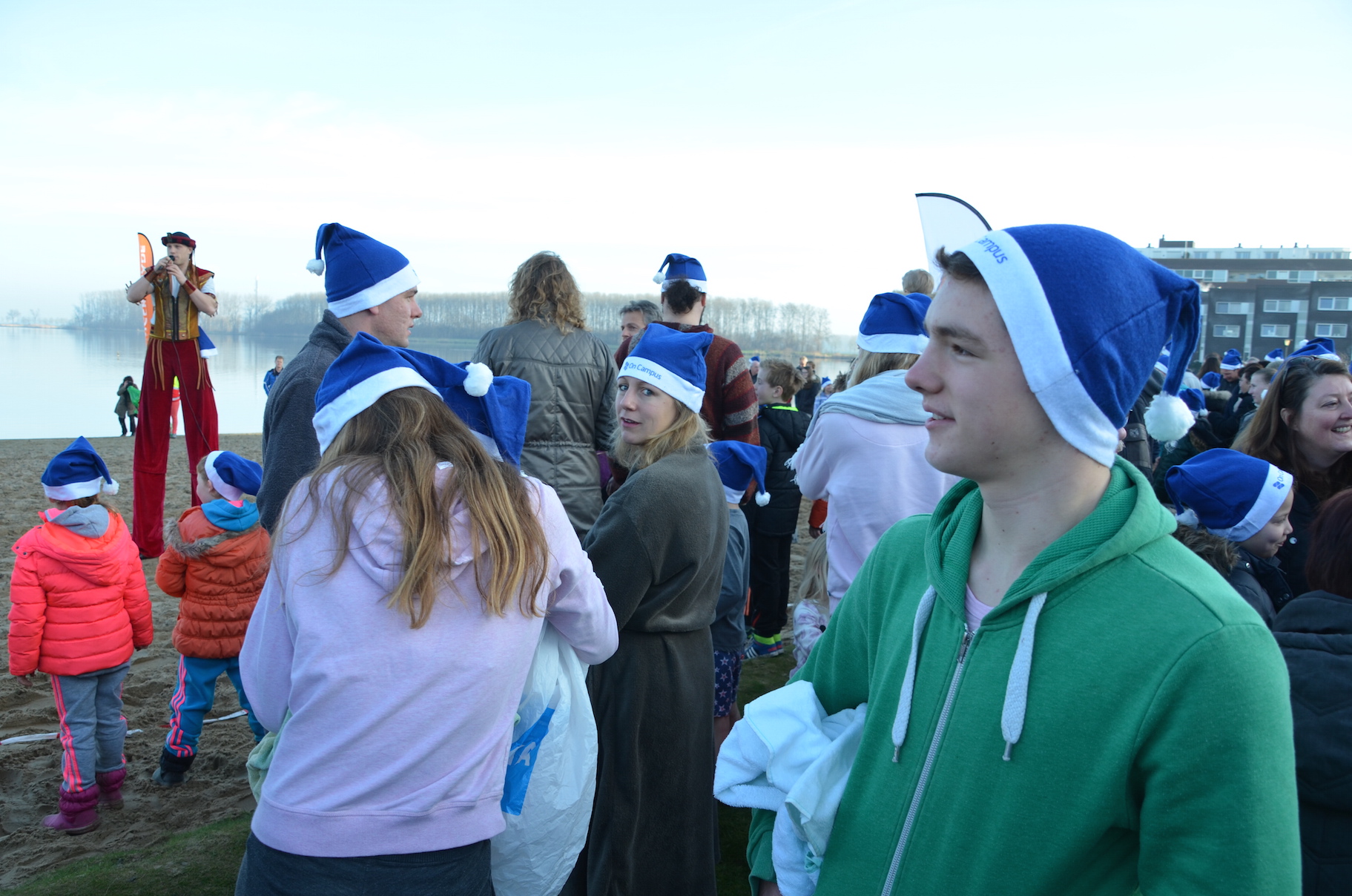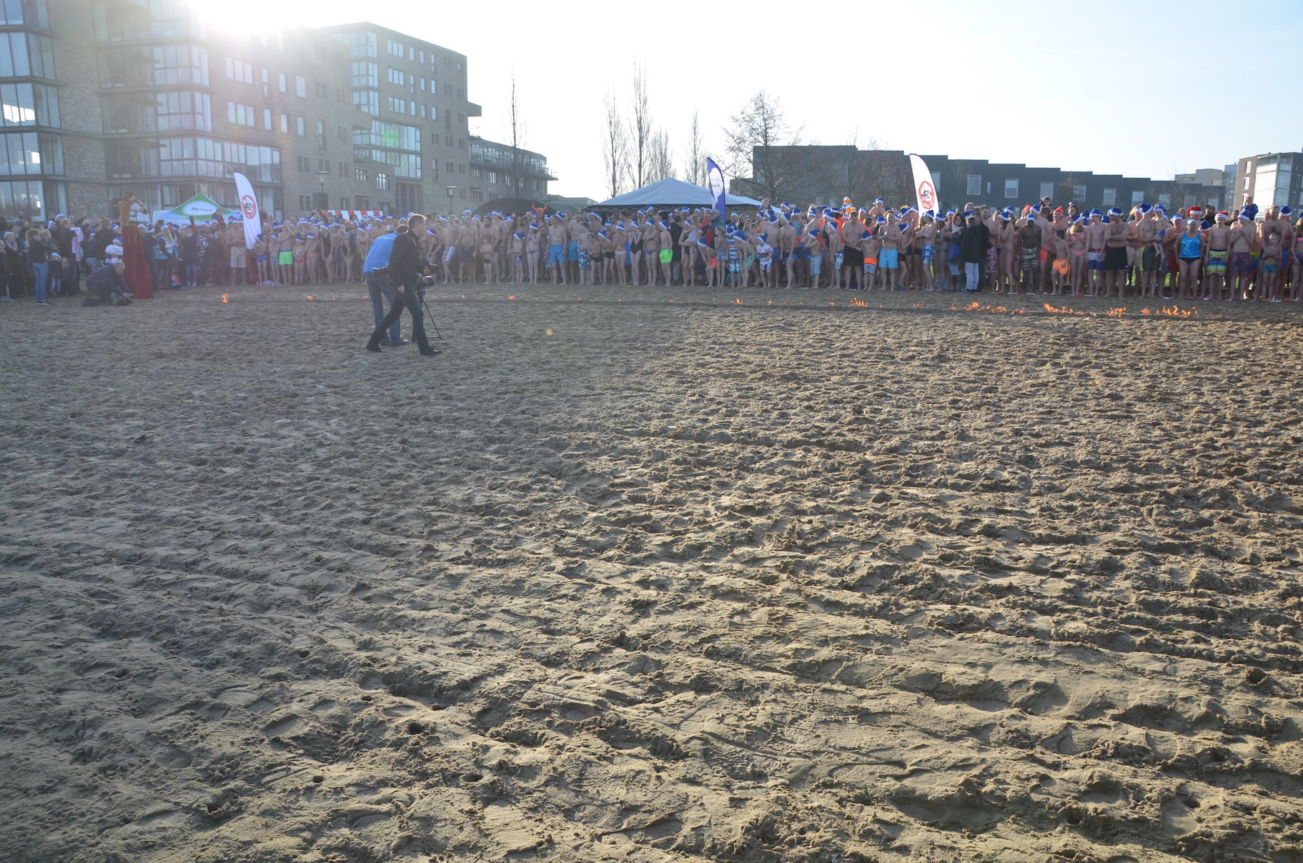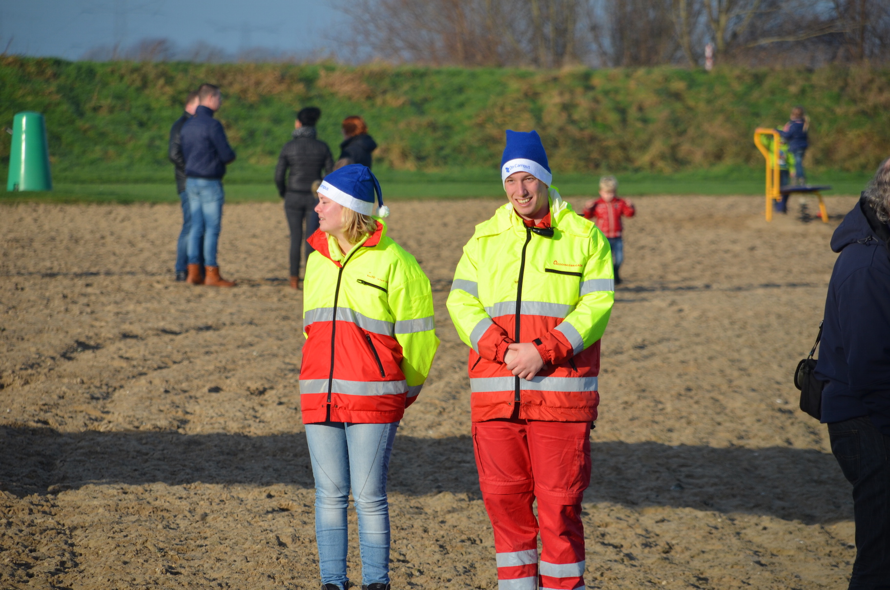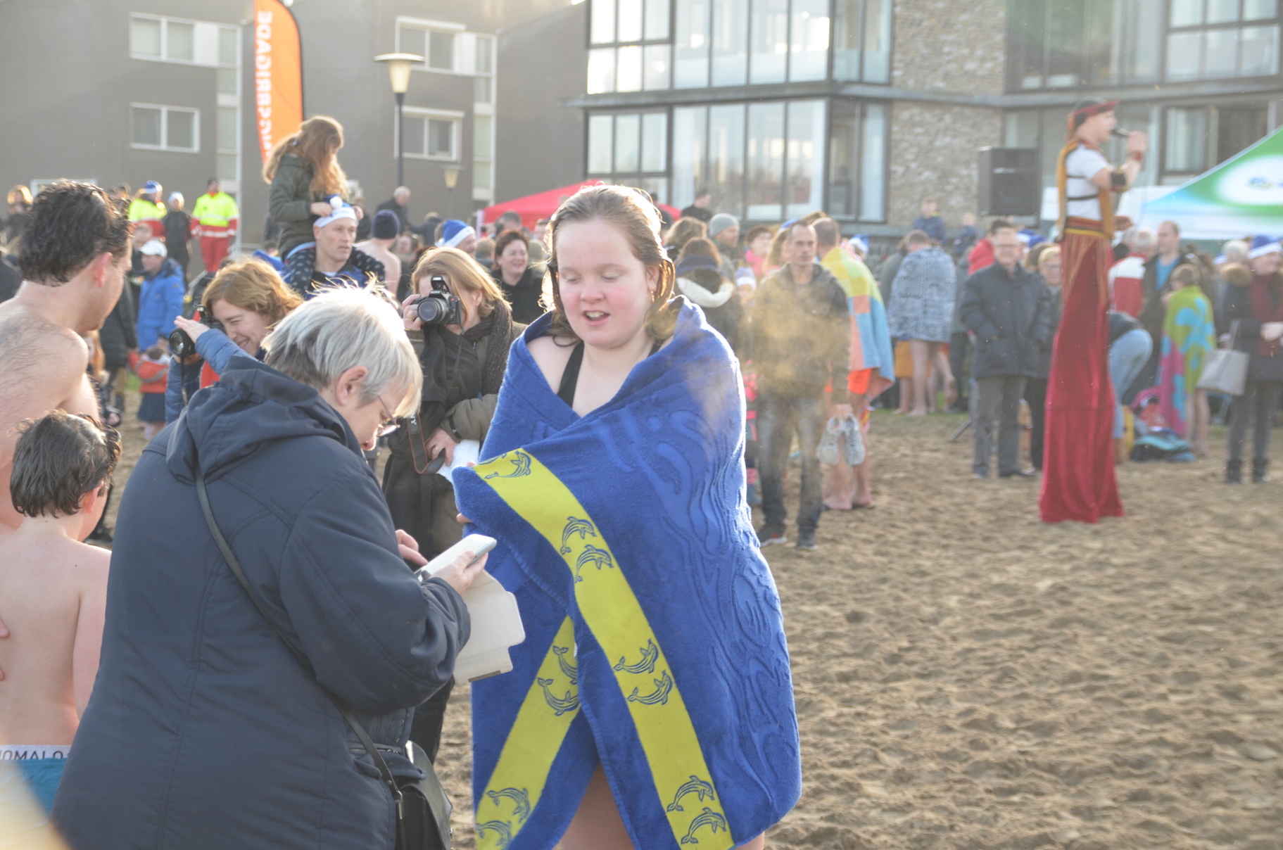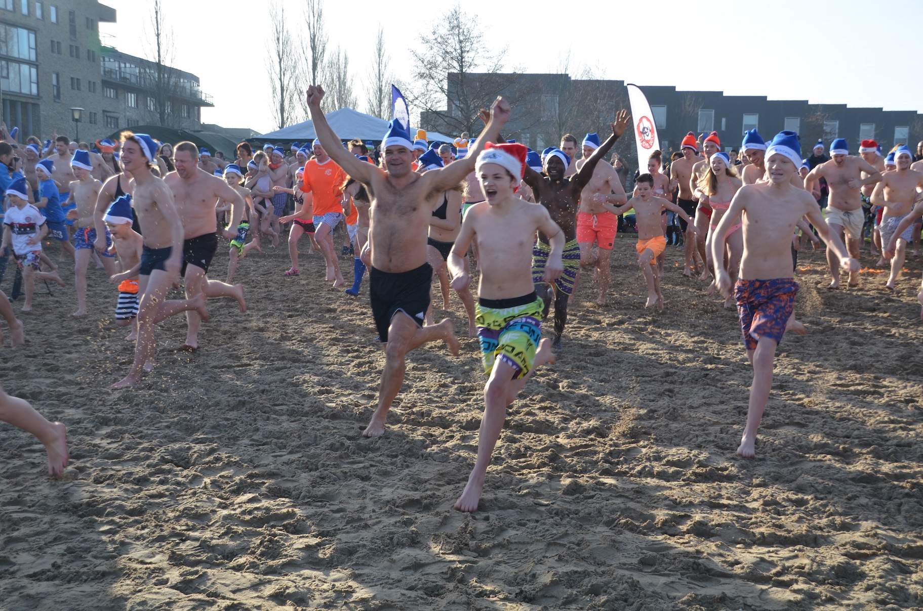 De nieuwjaarsduik was ook dit jaar weer goed georganiseerd. Een vuurspuwer op stelten vermaakte het publiek vooraf, dat zich achter de startlijn verzamelde. Een bijzondere startlijn, want over de hele breedte van het parcours werd er een lange lijn in vuur en vlam gezet. De naar schatting ruim vierhonderd deelnemers sprongen er na het aftellen enthousiast overheen, onder het wakende oog van vrijwilligers en de reddingsbrigade.