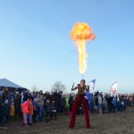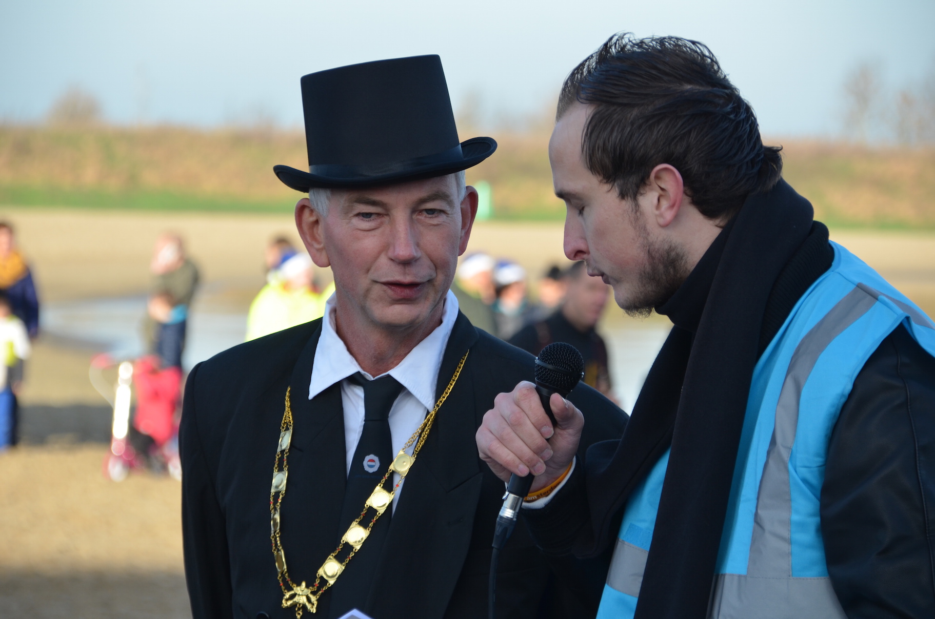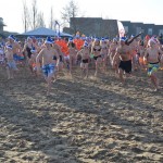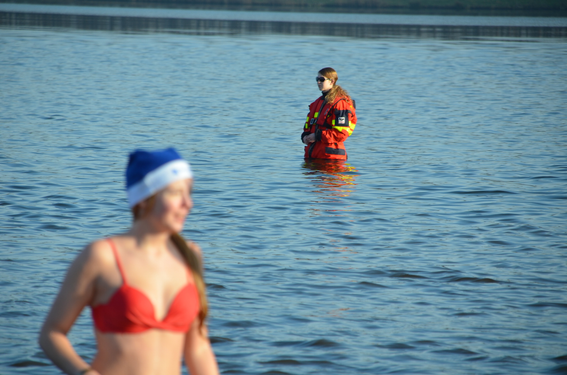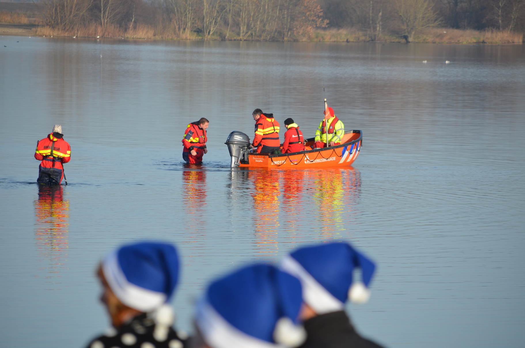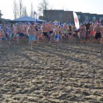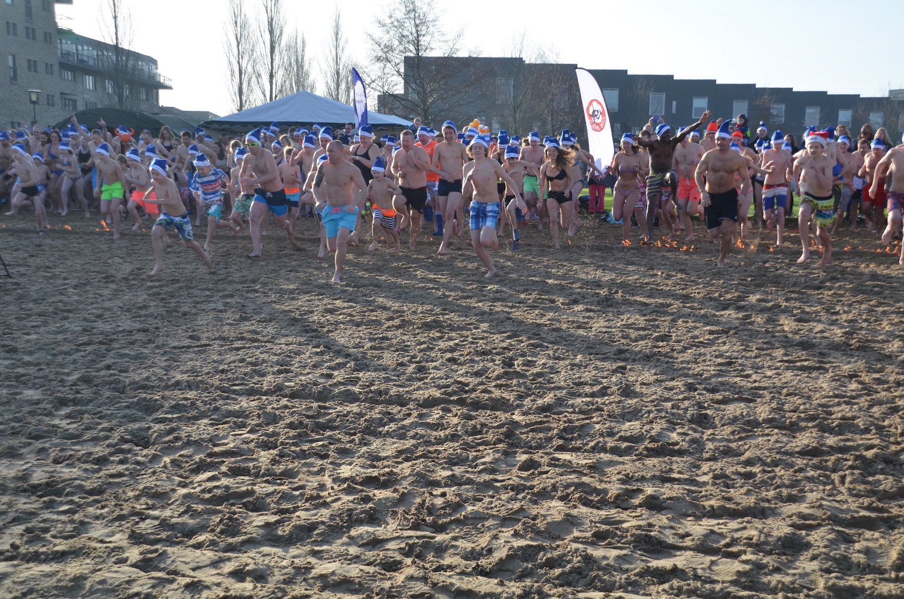 De nieuwjaarsduik was ook dit jaar weer goed georganiseerd. Een vuurspuwer op stelten vermaakte het publiek vooraf, dat zich achter de startlijn verzamelde. Een bijzondere startlijn, want over de hele breedte van het parcours werd er een lange lijn in vuur en vlam gezet. De naar schatting ruim vierhonderd deelnemers sprongen er na het aftellen enthousiast overheen, onder het wakende oog van vrijwilligers en de reddingsbrigade.