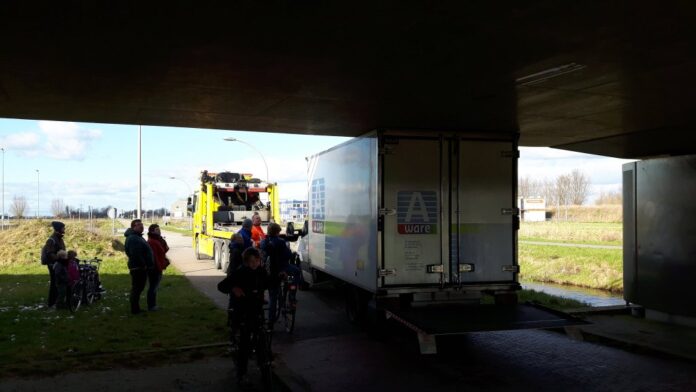 Een vrachtwagentje heeft zich maandagmiddag knel gereden onder de Stadshagenallee. De doorgang bleek net te laag voor de vrachtwagen, waardoor die vast kwam te zitten op de Oude Wetering. De sleepdienst moest ter plaatse komen om het vrachtwagentje weer los te trekken.