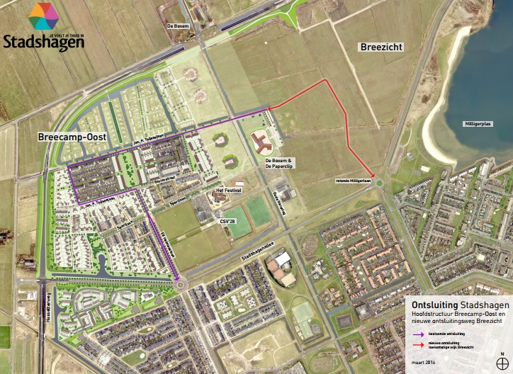 Het College van burgemeester en wethouders heeft op dinsdag 15 maart besloten dat deze tweede ontsluitingsweg er versneld moet komen. De nieuwe weg tussen Breecamp en de rotonde van de Stadshagenallee moet er begin volgende jaar liggen. Die extra route zorgt ervoor dat verkeer sneller de nieuwe buurt in en uit komt, en dat de bestaande weg Eli Heimanslaan minder druk is.