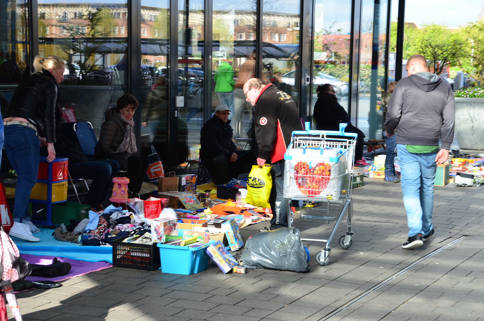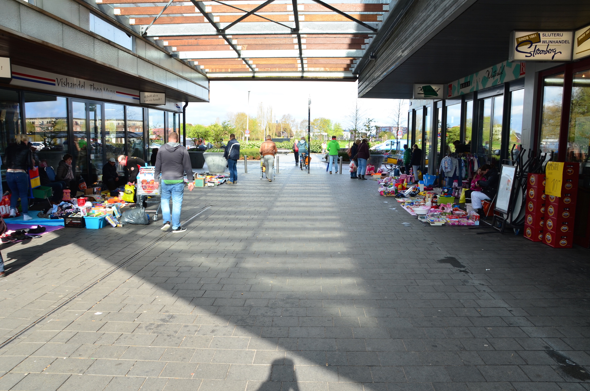“Wilt u wat kopen?”, vraagt een jongen enthousiast op een kleedje op de hoek van het winkelcentrum bij de Belvederelaan. Hier waait de wind het hardst en is het in de schaduw zelfs guur. Maar het is één van de plekken op de looproute van veel bezoekers, net als tussen het winkelcentrum en het Twistvlietpark, waar de zon zelfs warm op de eerste weifelende kopers schijnt.