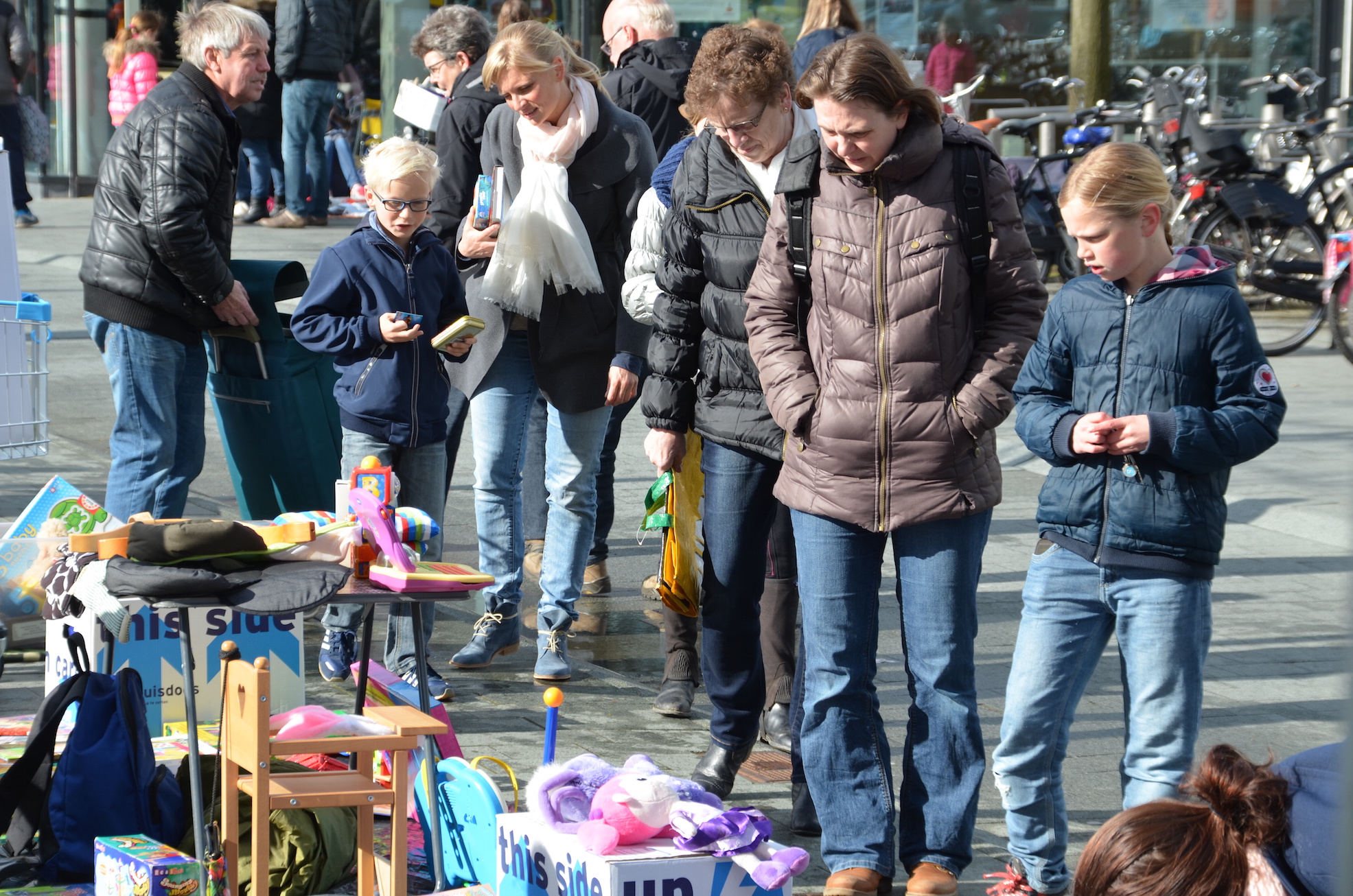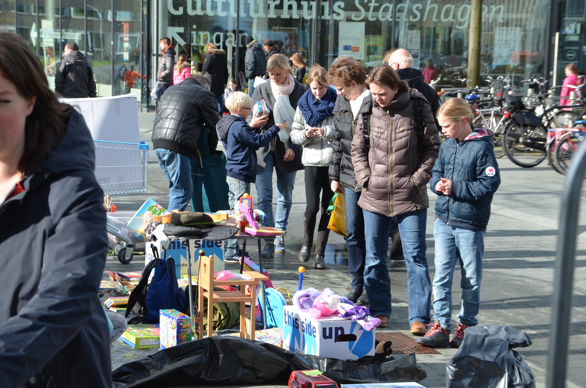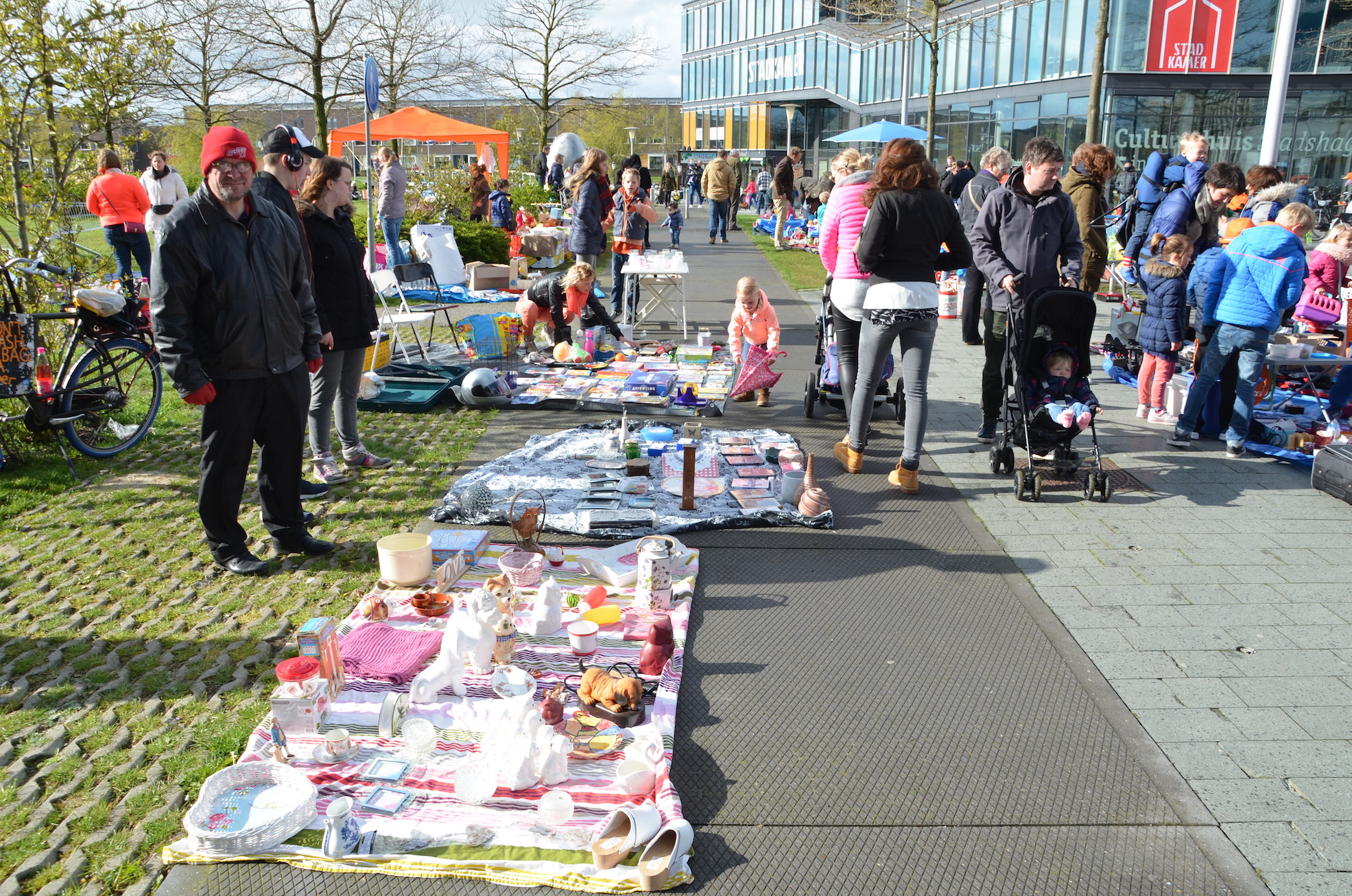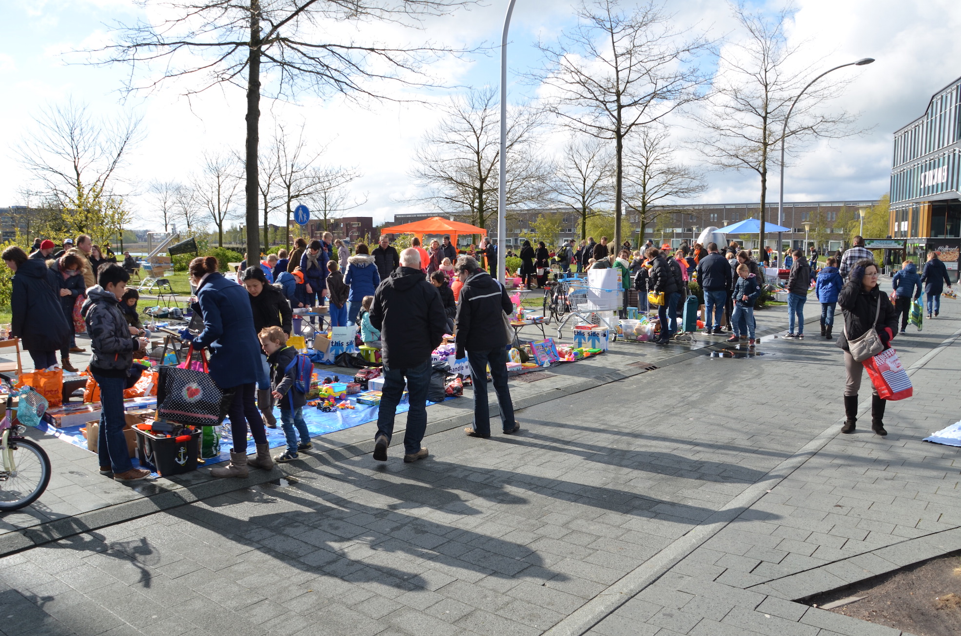 De weerberichten liegen er echter niet om. “Koningsdag wordt kouder dan de kerstdagen”, kopte het KNMI dinsdag. Maar veel Stadshagenaren weten zich toch te warmen aan de gedachte van een gezellig Koningsdagfeest. Alhoewel het nog niet zo’n storm loopt als in de voorgaande jaren, wisten enkele tientallen kleedjesverkopers zich toch al vroeg te nestelen in Stadshagen.