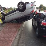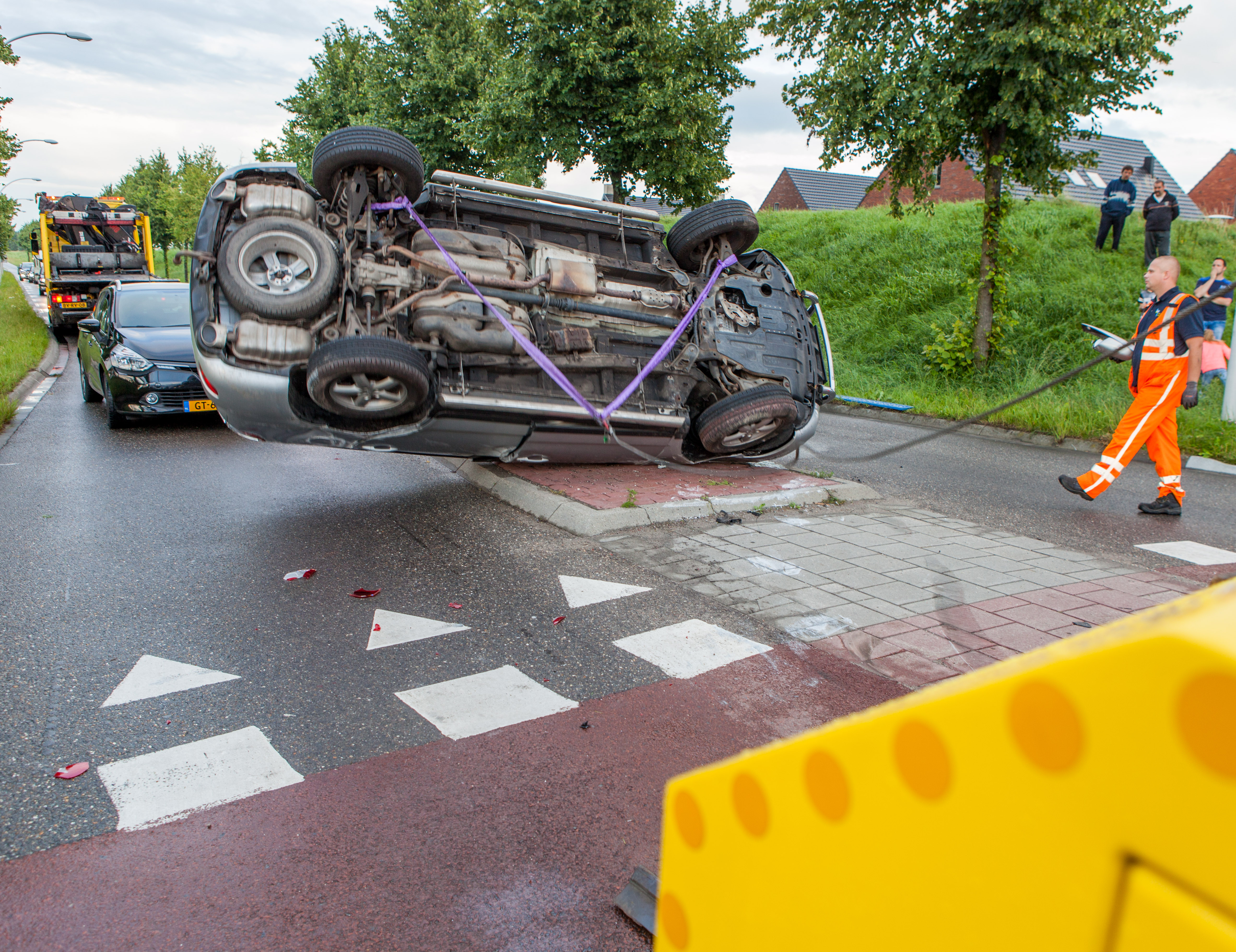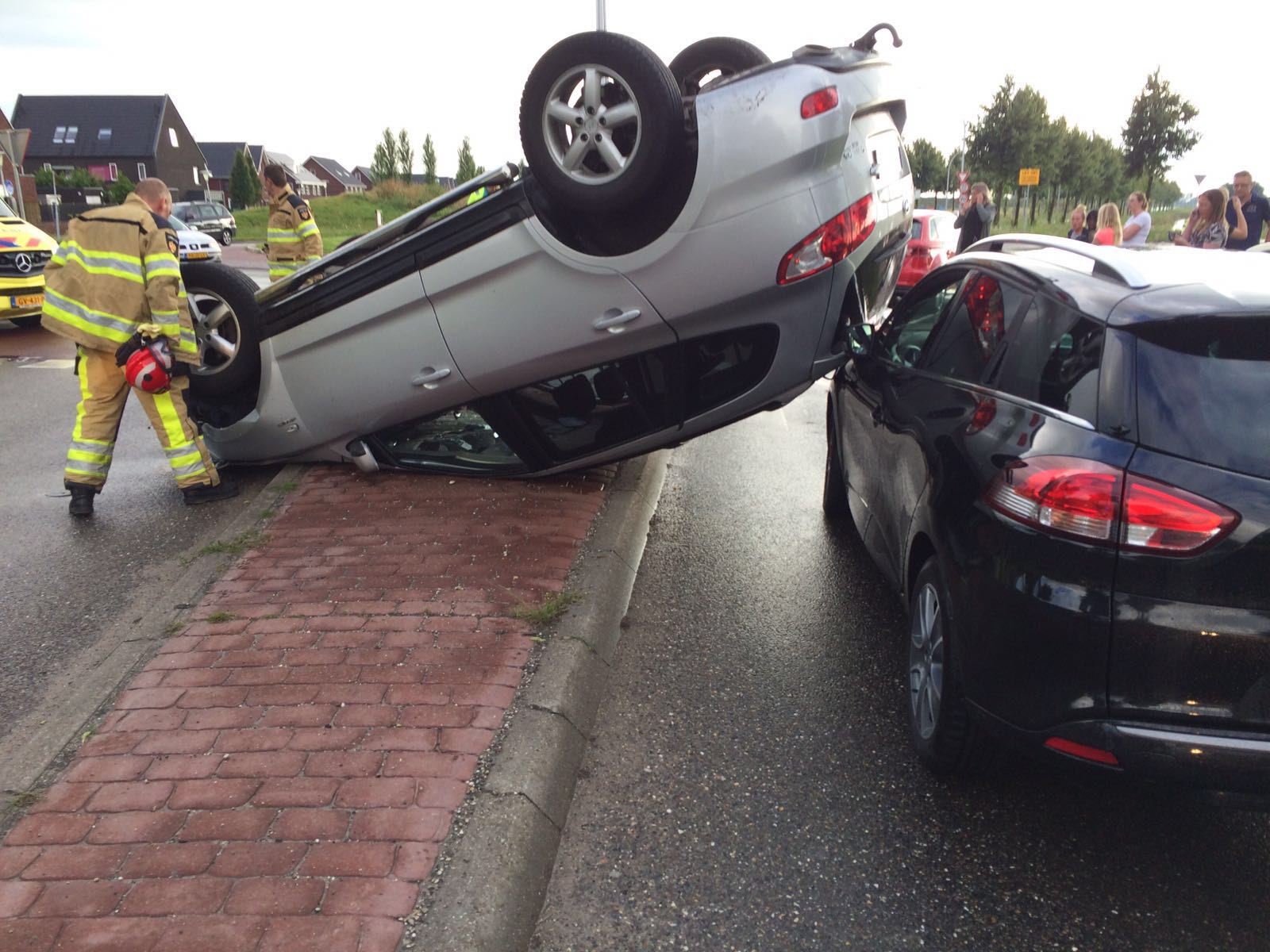 Een bizar ongeval in Stadshagen, dinsdagavond. Een auto die op de rotonde van de Havezathenallee met de Stadshagenallee reed is uit de bocht gevlogen, op z’n dak geland en heeft daarbij twee auto’s beschadigd. De bestuurder is volgens ooggetuigen daarna gevlucht en even later aangehouden door de politie in Breecamp.