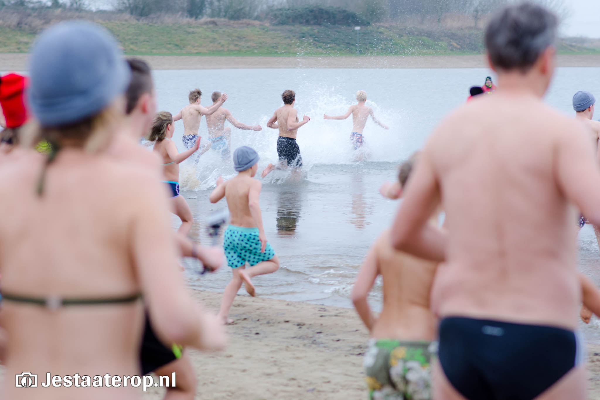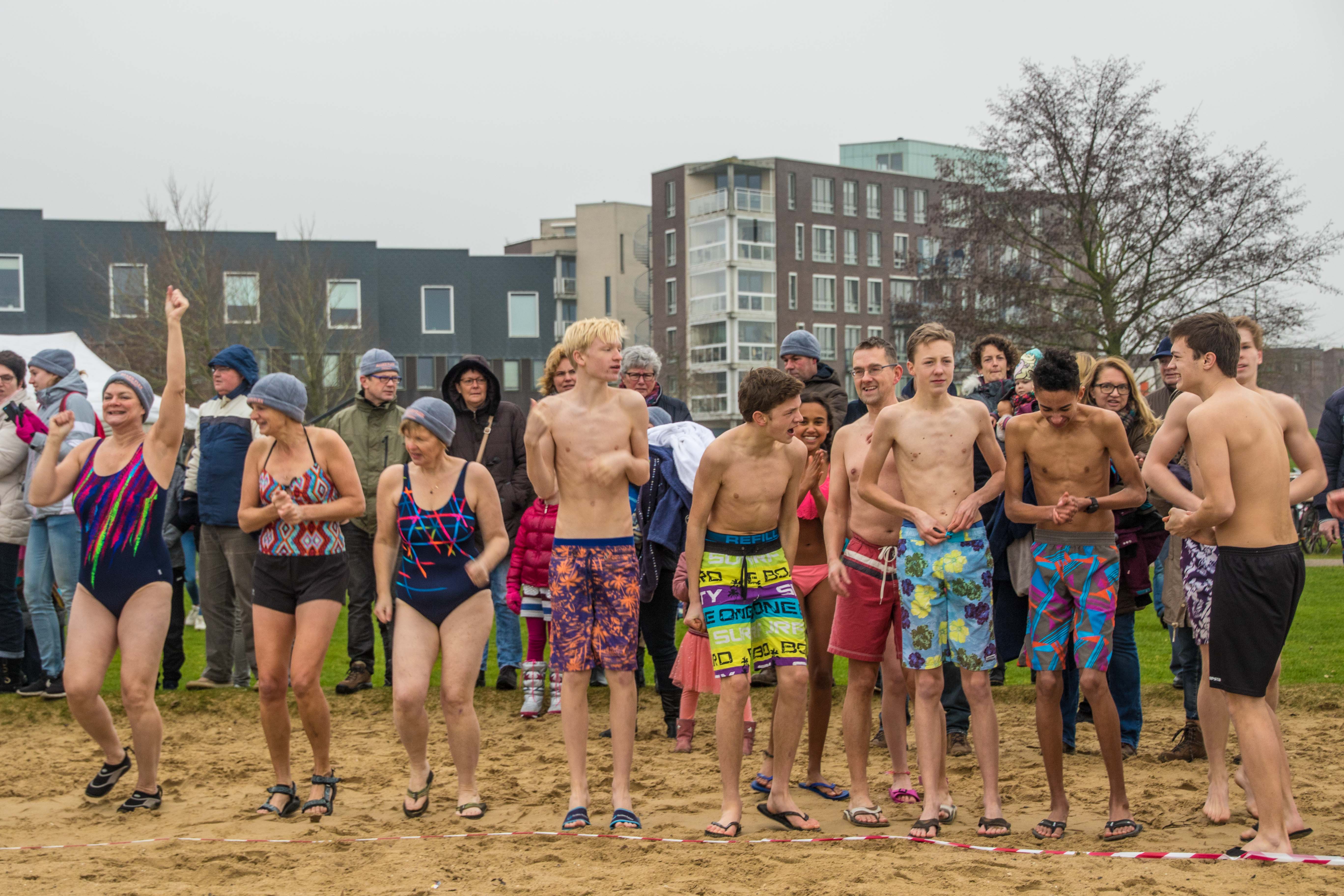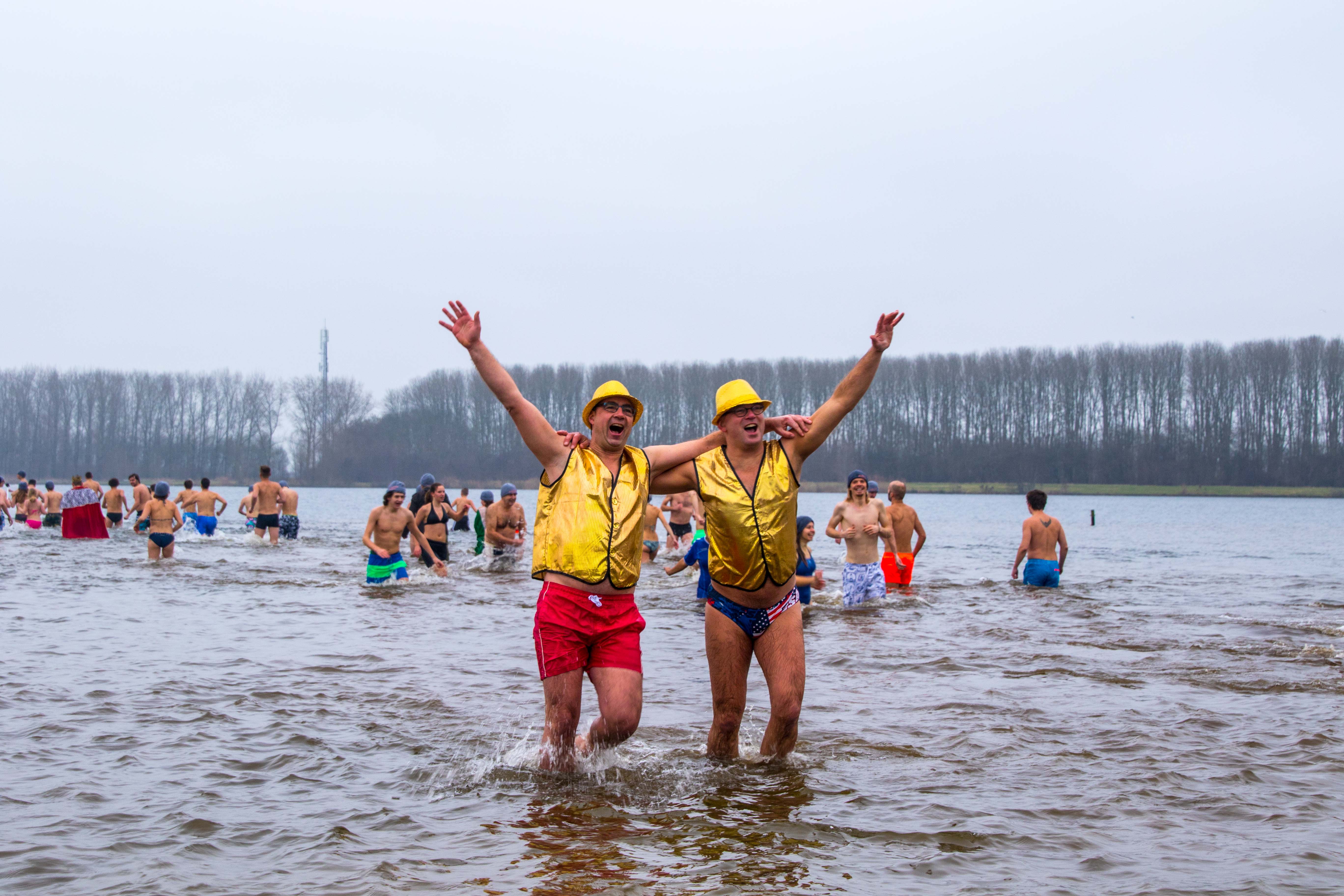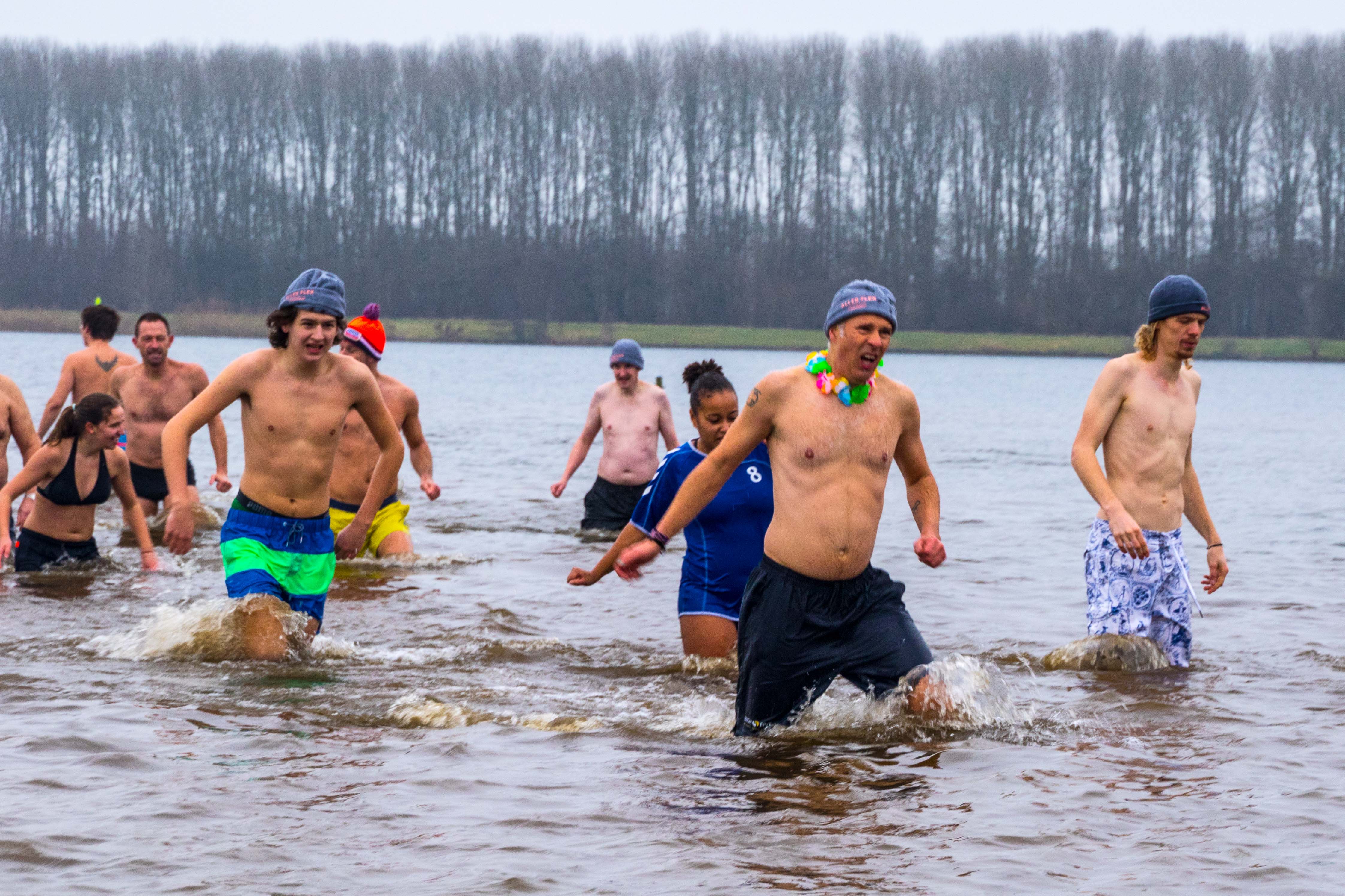 Met een buitentemperatuur van net boven het vriespunt was de traditionele nieuwjaarsduik aan de Milligerplas een stuk kouder dan voorgaande edities. Toch weerhield dat zo’n 300 deelnemers er niet van om het koude water in te duiken nadat om twaalf uur het startschot klonk.