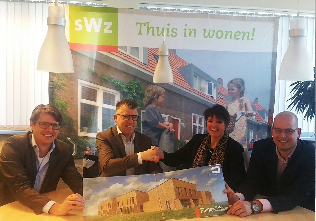 Aan de Wenckebachstraat in Breecamp-Oost gaat woningbouwcorporatie SWZ laat 22 duurzame terpwoningen bouwen. Aannemer Plegt Vos heeft onlangs de aanbesteding gewonnen en beide partijen hebben vrijdag 10 maart het contract ondertekend.